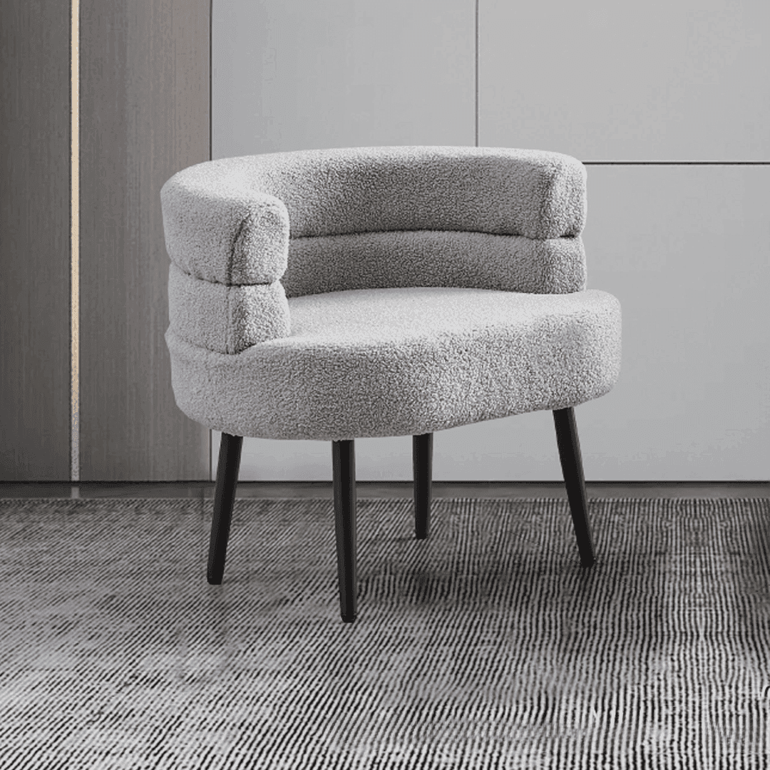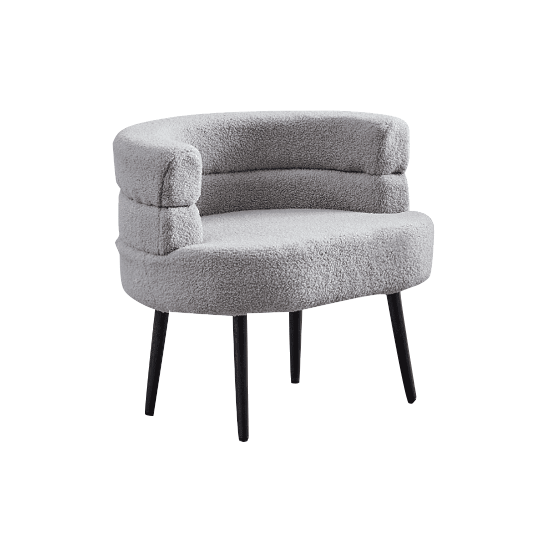 Welcome to the unique and quirky Muscida Grey Lounge Chair! Made with luxurious teddy fabric, this modern contemporary must-have will elevate any home. It features a wide seat for ultimate comfort, perfect for reading, hosting, or simply relaxing and watching a movie.