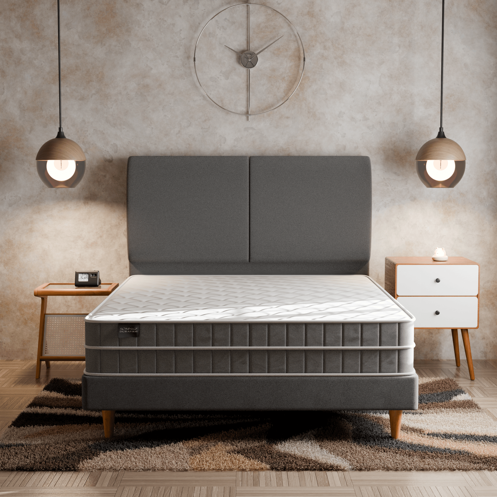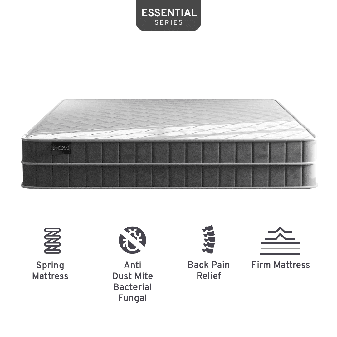 Elevate your sleep experience to the max with the Somnuz® Durafirm 10 inch Spring Mattress featuring a luxurious Eurotop. Crafted from robust, high-density foam, it delivers unparalleled spinal and full-body support, taking your rest to new heights. Prepare for a night of blissful slumber on this incredibly breathable mattress, offering just the right amount of plush comfort. Bid farewell to those nights of discomfort, sweaty sheets, and allergy triggers – make the switch to this thoughtfully engineered spring mattress for a restful sleep like never before.
