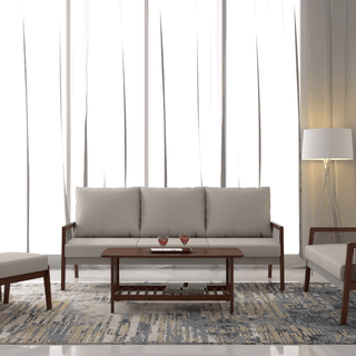 3. Modern Contemporary: If you're drawn to sleek lines, bold colours, and a mix of materials, modern contemporary design is your go-to style. Choose 3+2 seater sofas in bold shades like jewel tones or with striking patterns and textures. Combine materials such as metal, glass, and wood to create visual interest and layer in geometric or abstract art to complete the look.