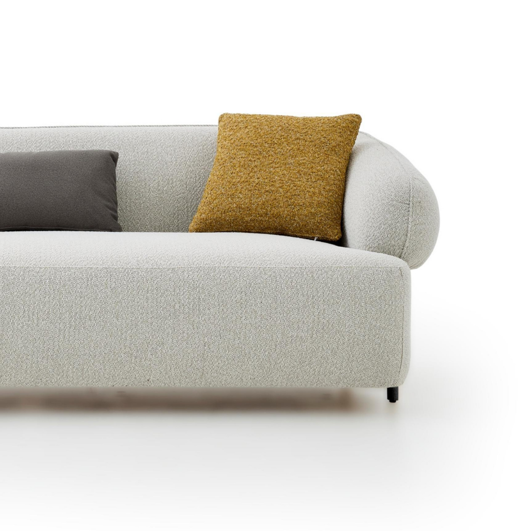 The Arcangelo Fabric Sofa is a striking blend of comfort and modern luxury. Upholstered in premium fabric and designed with a thick, rounded silhouette, this sofa brings a soft yet bold presence to any living space. Sleek dark-coloured legs subtly embedded into the frame create a refined, contemporary aesthetic that anchors the look with elegance.