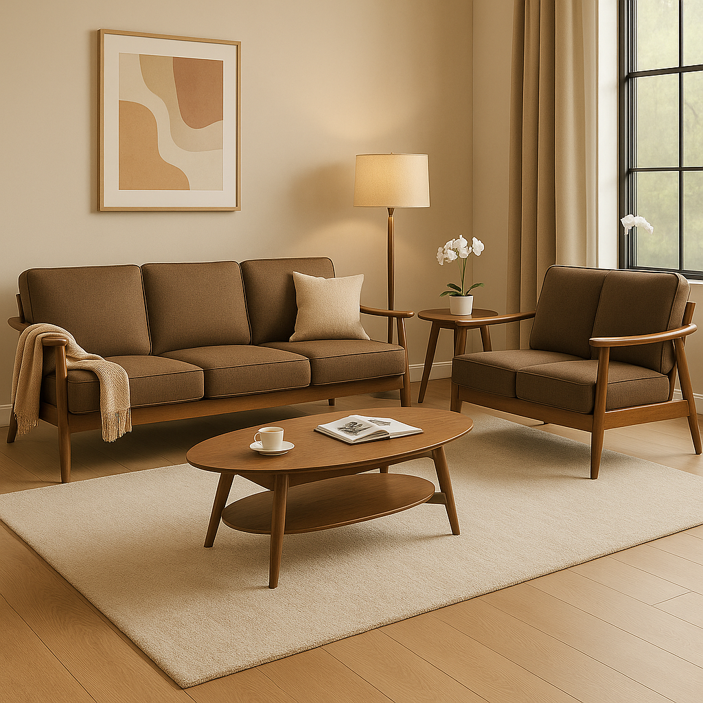 Designed with simplicity and functionality in mind, the Nivian Wooden Sofa seamlessly blends solid rubberwood craftsmanship with brown fabric cushions. Its clean lines and warm tones complement modern interiors, while the removable cushion covers ensure effortless maintenance.