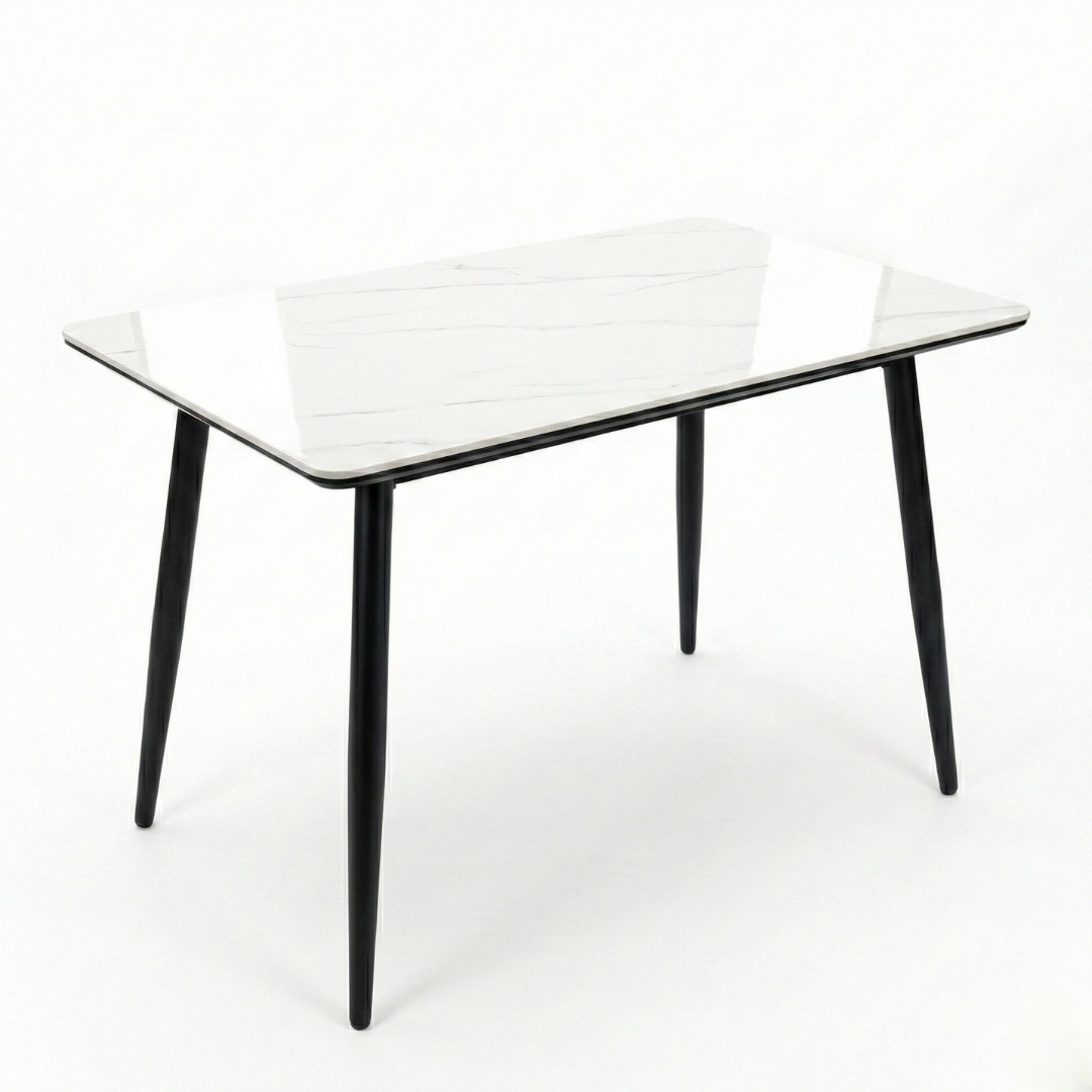 This table is built for real life: the ceramic surface is highly resistant to heat, scratches, and stains, making it perfect for everything from hot dinners to work-from-home setups. It rests on tapered black metal legs, providing a sturdy, wobble-free foundation with a minimalist industrial edge.