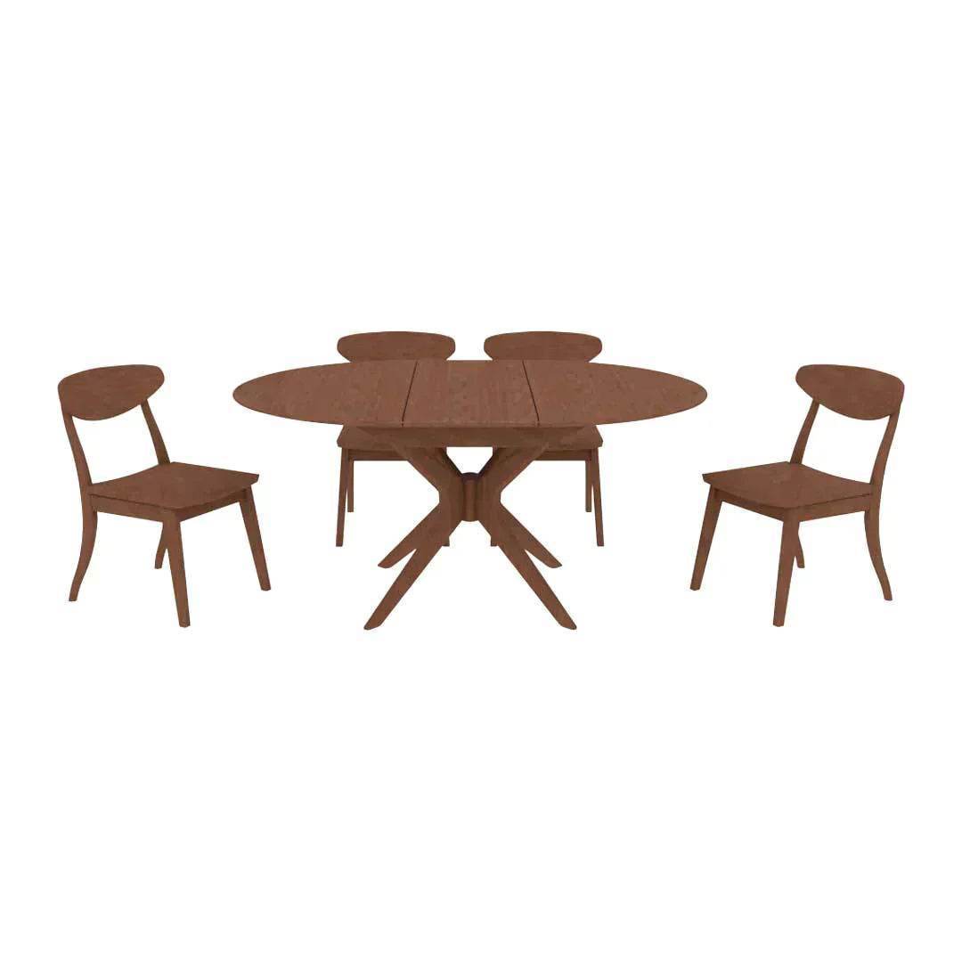 Crafted from solid rubber wood, this set includes a versatile extendable table and four comfy chairs, perfect for small homes with gold space. The sturdy build promises to handle family life's hustle and bustle.
