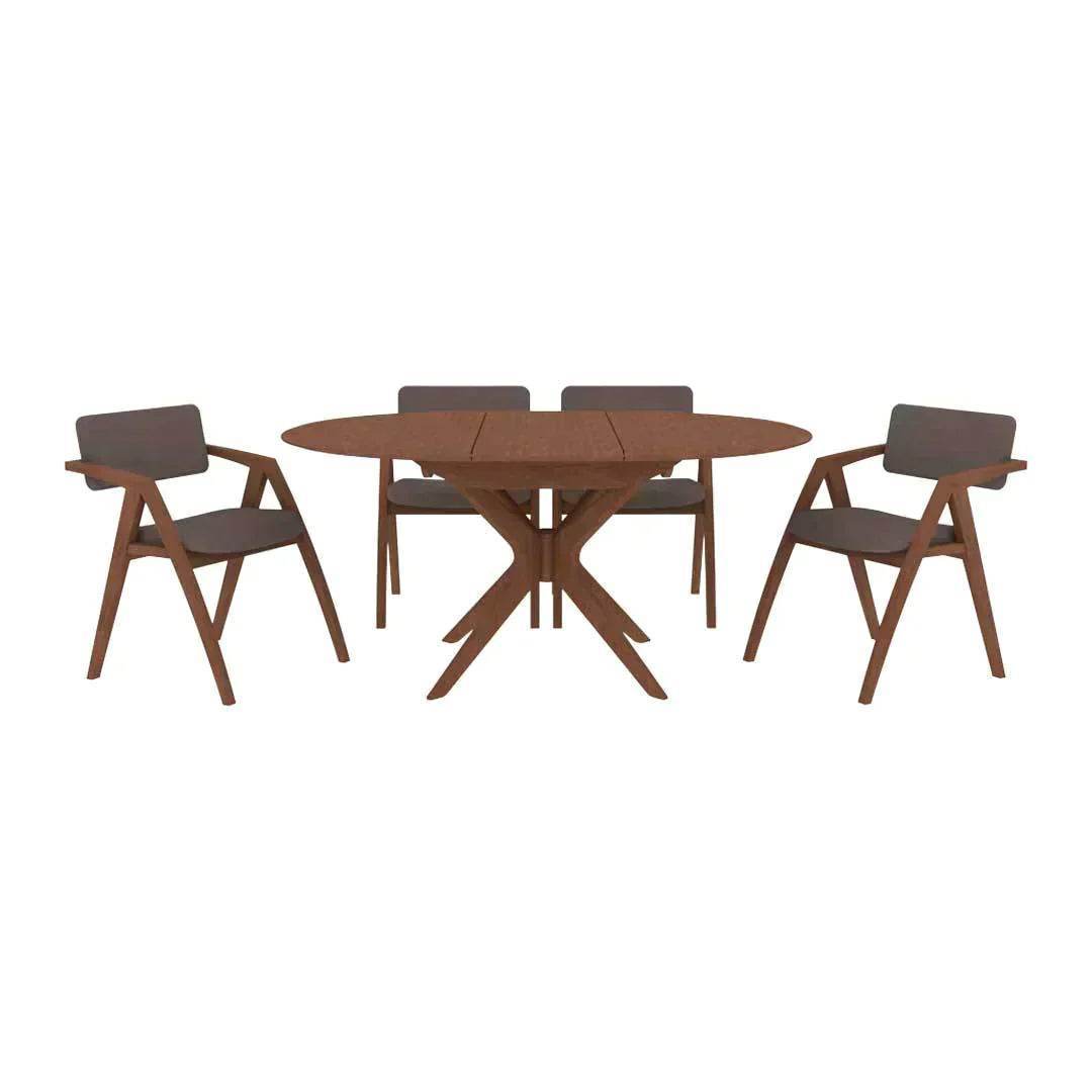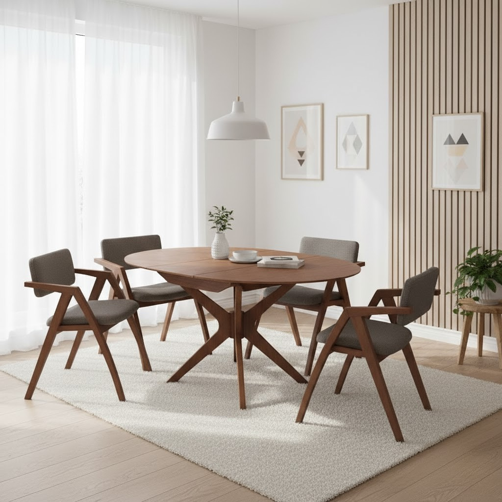Cramped dining room blues? Meet the Veryl Extendable Wooden Dining Set! This set is a space-saving wonder. Made from solid rubber wood, it includes a nifty extendable table and four comfy chairs. Ideal for those tight on space but love hosting - compact for daily use, it extends easily for extra guests.