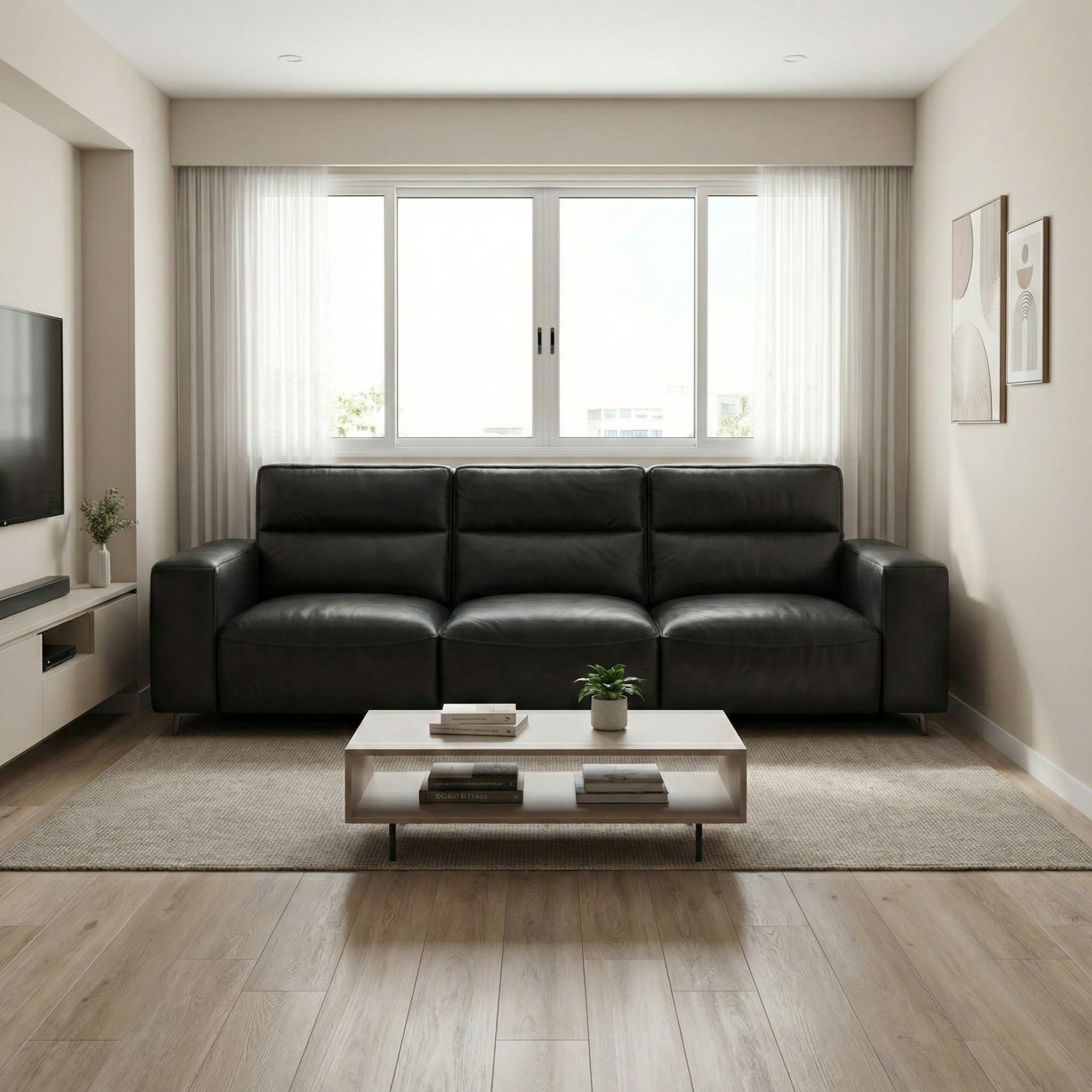 The Astryx Leather Sofa delivers scale, premium craftsmanship, and engineered comfort — designed to anchor modern living spaces with confidence.