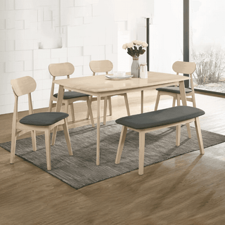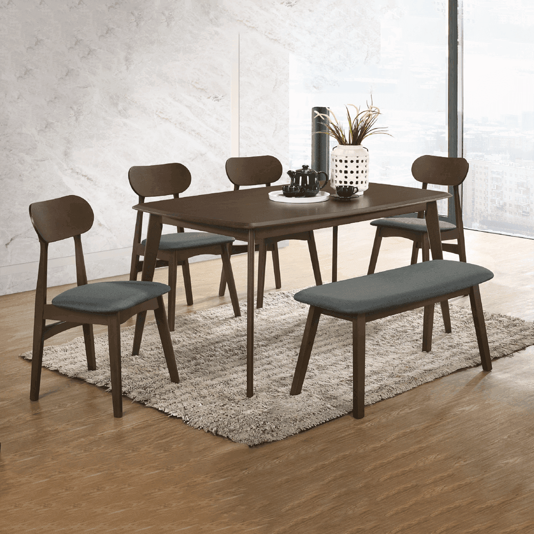 1 Wooden Dining Table + 4 Fabric Wooden Dining Chairs + 1 Fabric Wooden Dining Bench