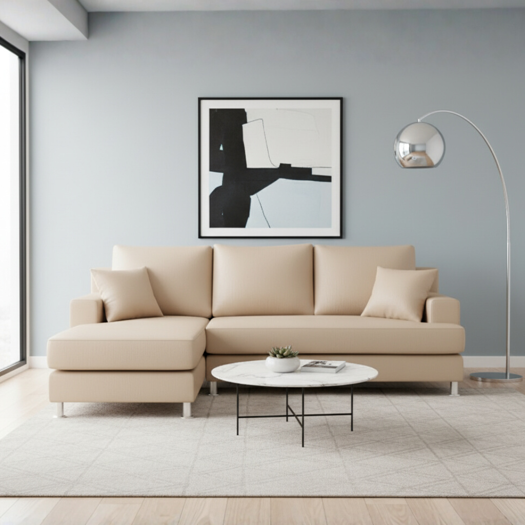 Unleash your bold side with the Aurora Faux Leather L-Shape Sofa! This sleek and modern sofa is perfect for those who crave adventure and aren't afraid to take risks. Its L-shape design provides ample seating space while the faux leather material adds a touch of luxury. Upgrade your living space and indulge in daring comfort with the Aurora Sofa.