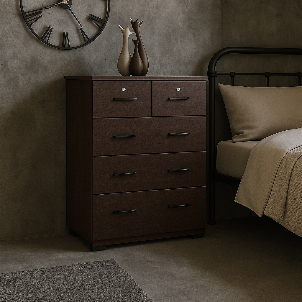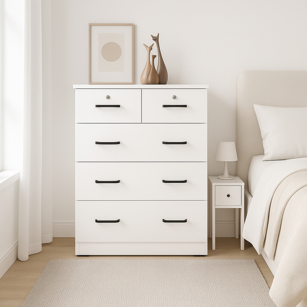 A clean, minimalist and spacious piece, Brookson Senior Chest Of Drawer offers its beauty and function that everyone will love. This unit presents a fascinating minimalist appeal and versatile drawer style. The combination of spacious pull-out drawers and two mini top drawers give you enough room to organise your clothes, beddings, linens, and accessories in one place.