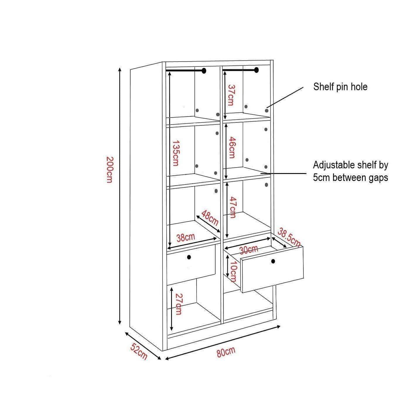 The Devereau Open Door Wardrobe is designed for practicality and features thoughtful storage solutions to streamline your daily routine. With its shelves, hanging rails, and convenient compartments, organising your clothing collection becomes effortless. Say goodbye to rummaging through cluttered closets and hello to a meticulously curated wardrobe at your fingertips.