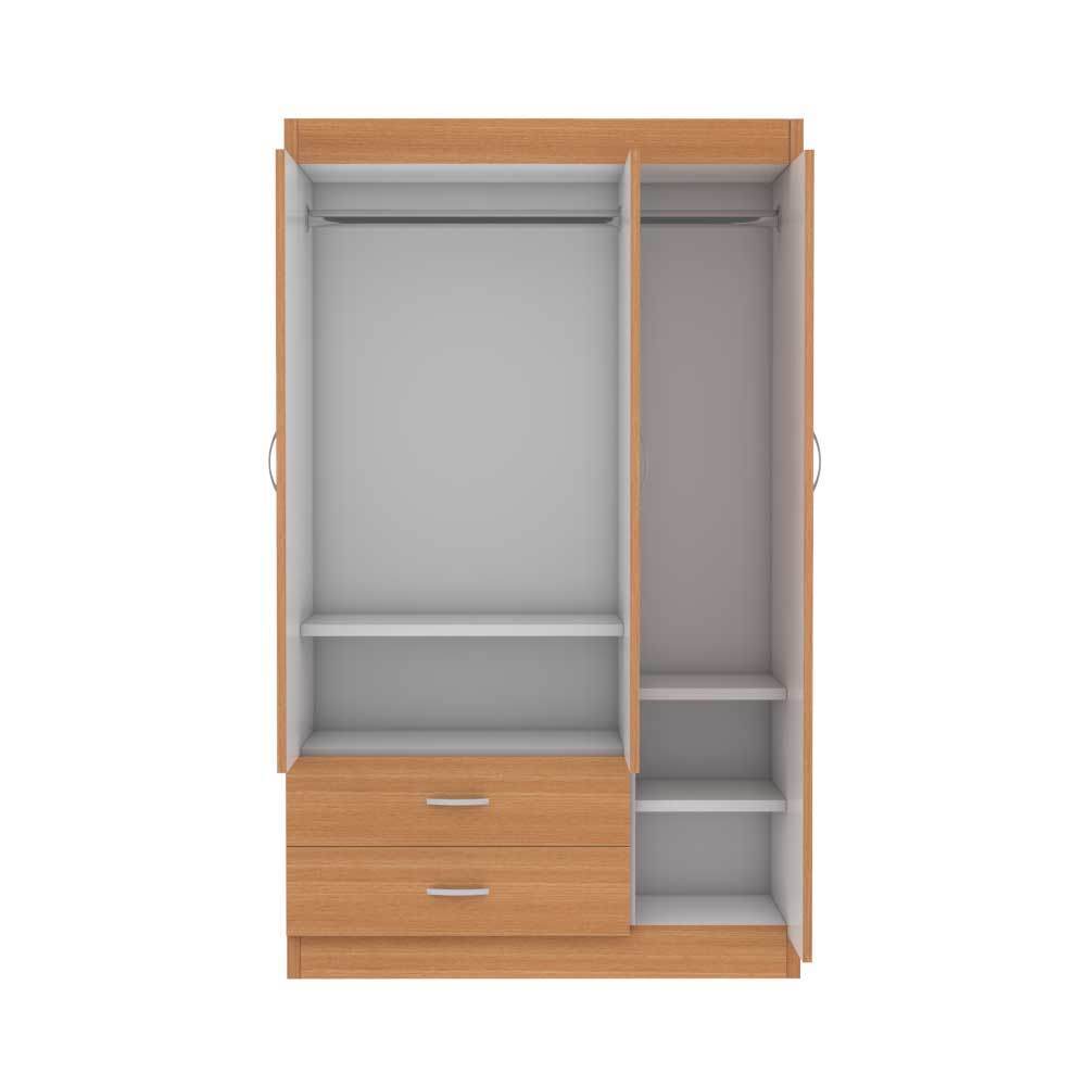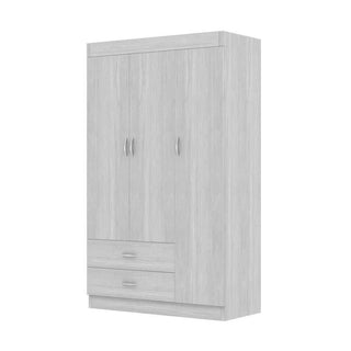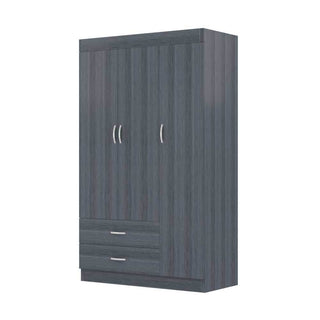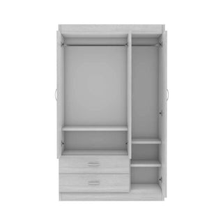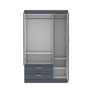 Maximise your storage space with the Quinton 3-door open wardrobe. The perfect spot to organise your clothes and belongings, this wardrobe boasts soft-closing hinged doors for a touch of luxury. Equipped with two drawers and crafted from solid plywood, it effortlessly combines functionality with style, making it a must-have addition to your bedroom.