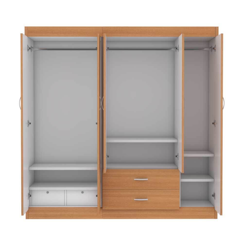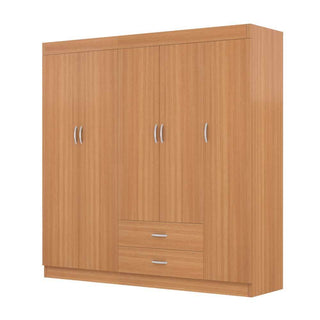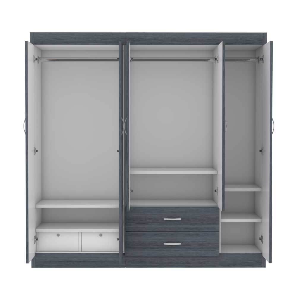 Never worry about organising your clothes and bedroom essentials again with the Quinton 5 Door Open Wardrobe. Constructed from solid plywood, it boasts durability and style while adding sophistication to your space. Its soft-closing hinged doors ensure a quiet and seamless operation.