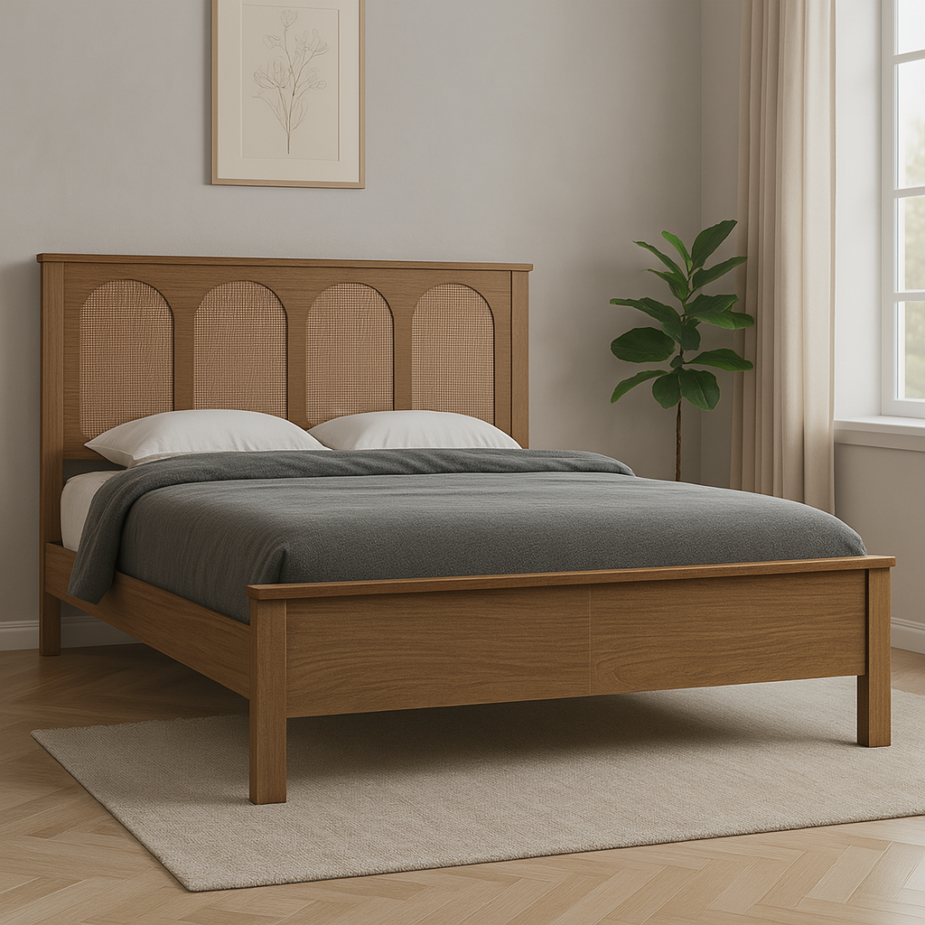 - Comfortable Rattan Headboard – Adds natural texture while maintaining breathability.