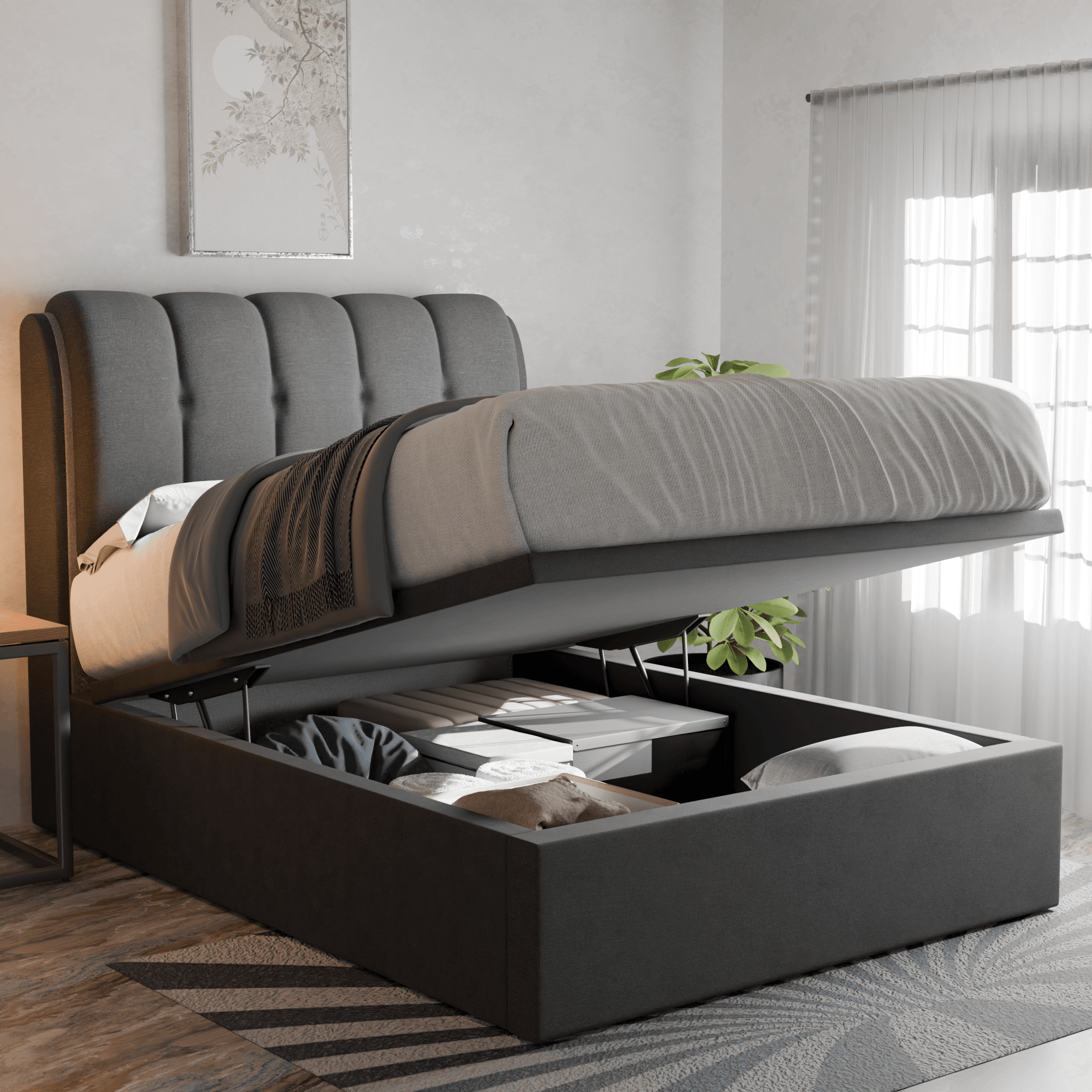 Maximizing storage in tight spaces can be a challenge, but with Corave Fabric Storage Bed, you can enjoy spacious concealed storage without any compartments. The divan platform is equipped with a high-quality hydraulic system for effortless access.