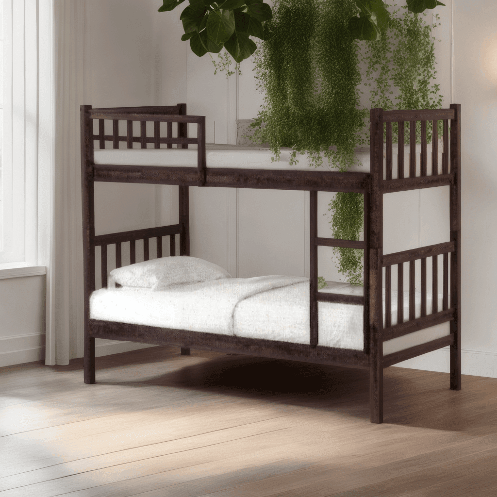 Have you ever wished for a stylish bed that elevates your bedroom's charm and saves space? Look no further! Introducing the Alondra Walnut Wooden Double Decker Bed Frame, the answer to your space-saving dreams. What sets this bed frame apart is its clever double-decker design. Perfect for shared rooms or accommodating guests, the Alondra Walnut Wooden Double Decker Bed Frame provides two comfortable sleeping spaces without compromising floor space.