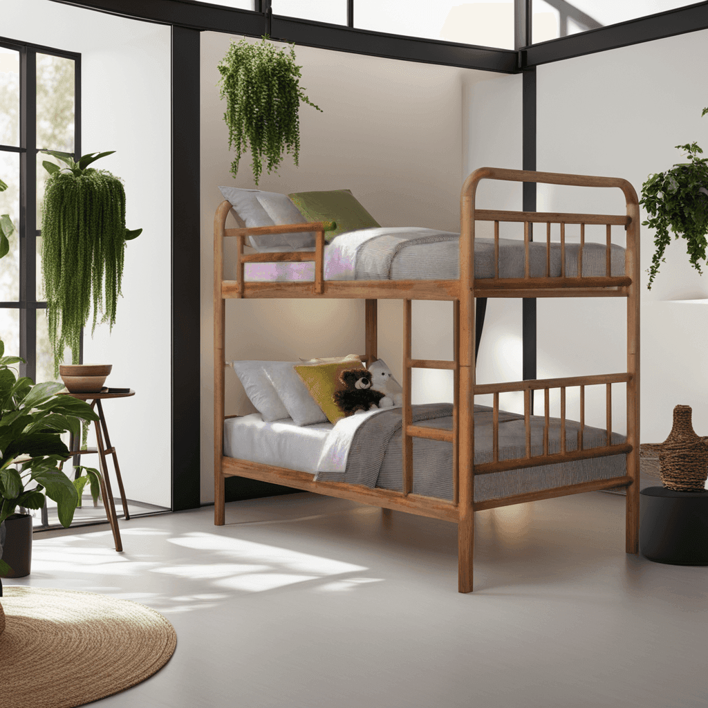 Feel the beauty of nature in the heart of your bedroom with the Arlina Wooden Double Decker Bed Frame. Constructed with high-quality wood, this double-decker bed frame gives natural elegance and ensures durability for years to come, as this double-decker design maximises space, making it perfect for shared rooms or for hosting guests without compromising on comfort.