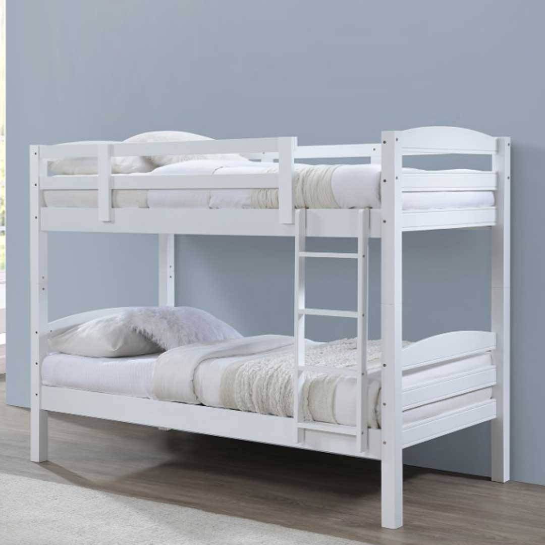 Maximise your space and elevate your bedroom with the Juliette White Wooden Double Decker Bed Frame made from sturdy and high-quality wood, ensuring durability and stability. This stylish and practical bed frame is designed to make the most of your available space as its double-decker design allows you to have two sleeping areas in a single compact unit, perfect for sharing bedrooms or accommodating guests.