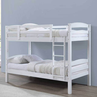 Bring home the Juliette White Wooden Double Decker Bed Frame, where you can create a functional and visually appealing sleeping area that maximises your space without compromising style.