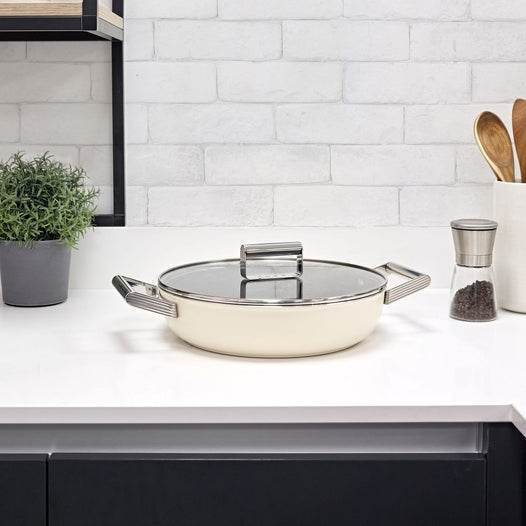 Description Deep Pan 28cm with Lid, Cream