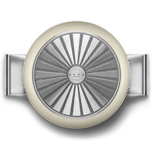 The patented base allows compatibility with all types of hobs; gas, electric, ceramic and induction, for maximum versatility. It is possible to put all Smeg cookware in the oven up to a temperature of 250°C/480°F and they can also be put in the dishwasher for easy cleaning.