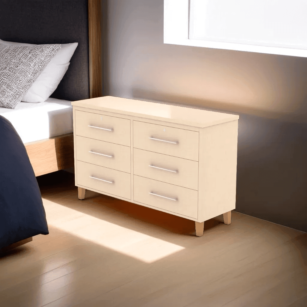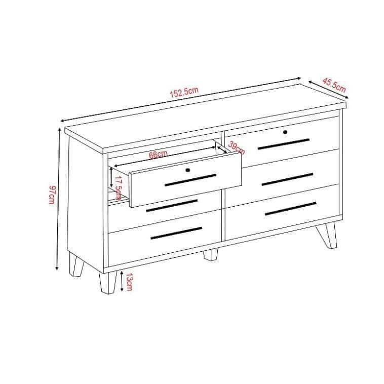 Enhance the organisation and aesthetics of your home with the Arnelle Chest of Drawer, a versatile and stylish storage solution that effortlessly fits anywhere in your home. This chest has six spacious drawers and ample storage space to keep your belongings tidy and easily accessible. So, whether you need a spot for kitchen utensils or a place to store living room essentials, the Arnelle Chest of Drawers has you covered.