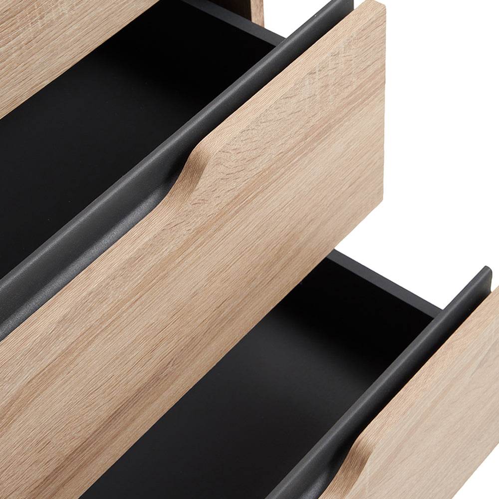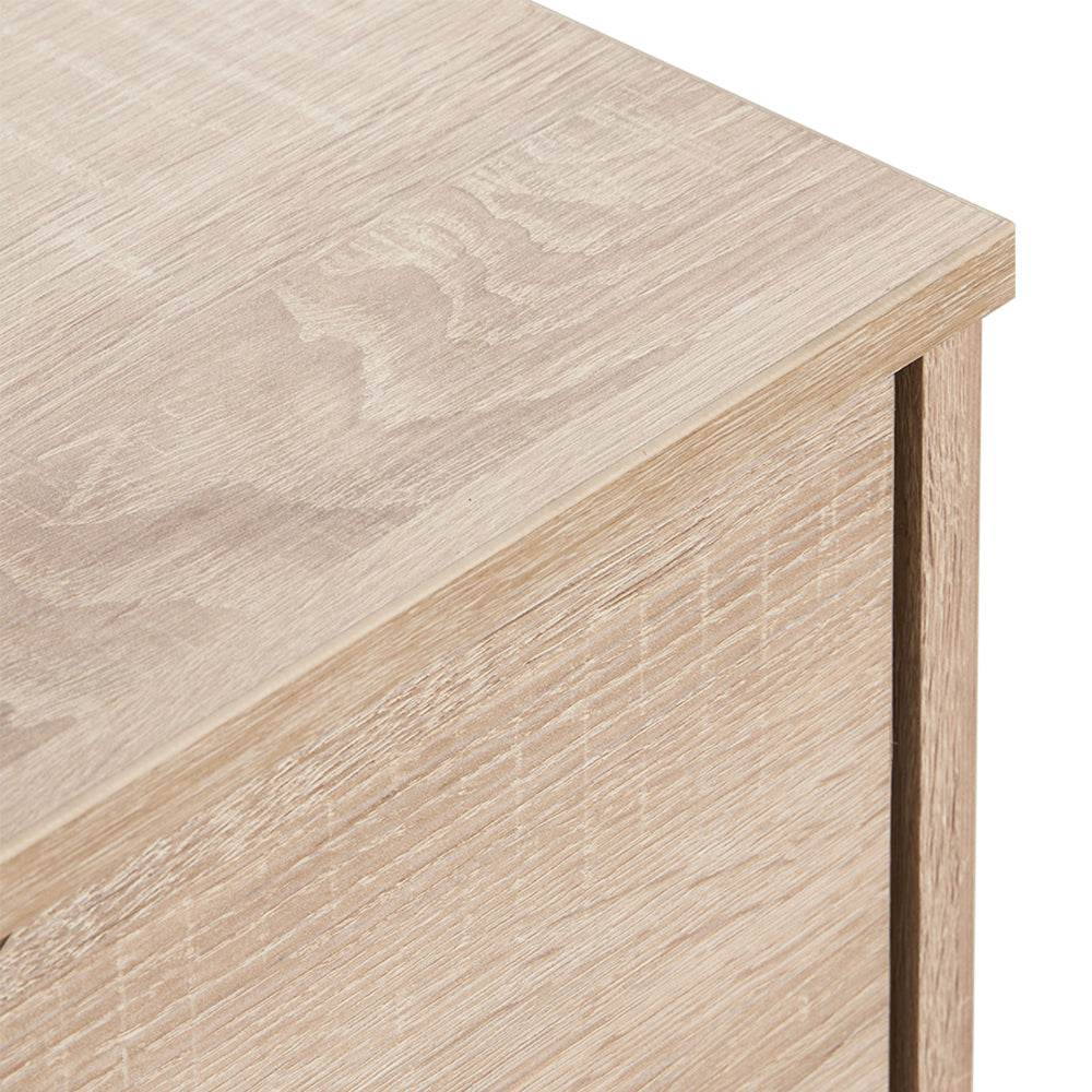 Crafted from durable particle board with a sleek wood-look finish, it complements both minimalist and contemporary interiors. Its horizontal build makes it ideal for homes where space is limited, while the broad top surface can be used to display décor or daily essentials.