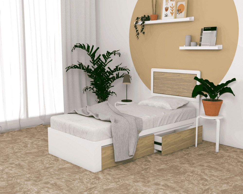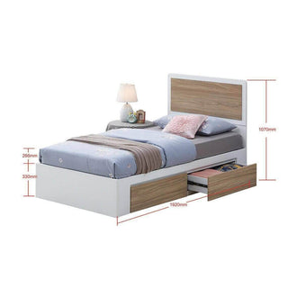 Experience optimal comfort with the Hagel Wooden Drawer Bed – a seamless blend of timeless elegance and contemporary functionality. Constructed with a sturdy MDF frame, this bed ensures enduring strength and durability for nights filled with serene slumber. This bed boasts two-soft-close drawers on smooth metal tracks, offering ample storage space while ensuring a quiet and effortless closing experience, and the flat mattress support base ensures uniform weight distribution and optimal comfort, promising a restful sleep night after night.