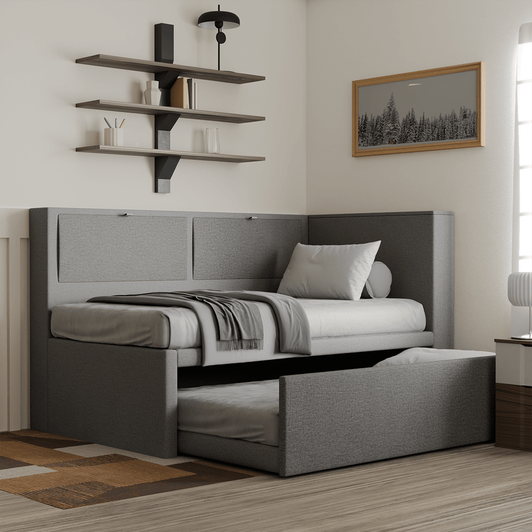 Trundle beds are some of the best solutions to maximise the use of your room. Ideal for guest rooms or shared rooms, this 3 in 1 fabric bed will definitely help you make the most out of your limited space. Made with high-quality fabric, carefully assembled frame, and cushioned headboard.