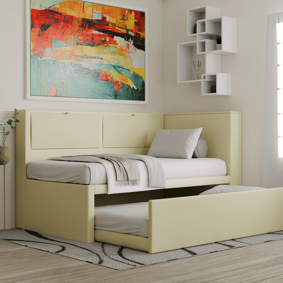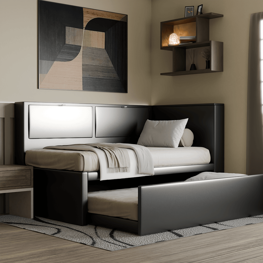 Trundle beds are some of the best solutions to maximise the use of your room. Ideal for guest rooms or shared rooms, this 3 in 1 faux leather bed will definitely help you make the most out of your limited space. Made with high-quality faux leather, carefully assembled frame, and cushioned headboard.