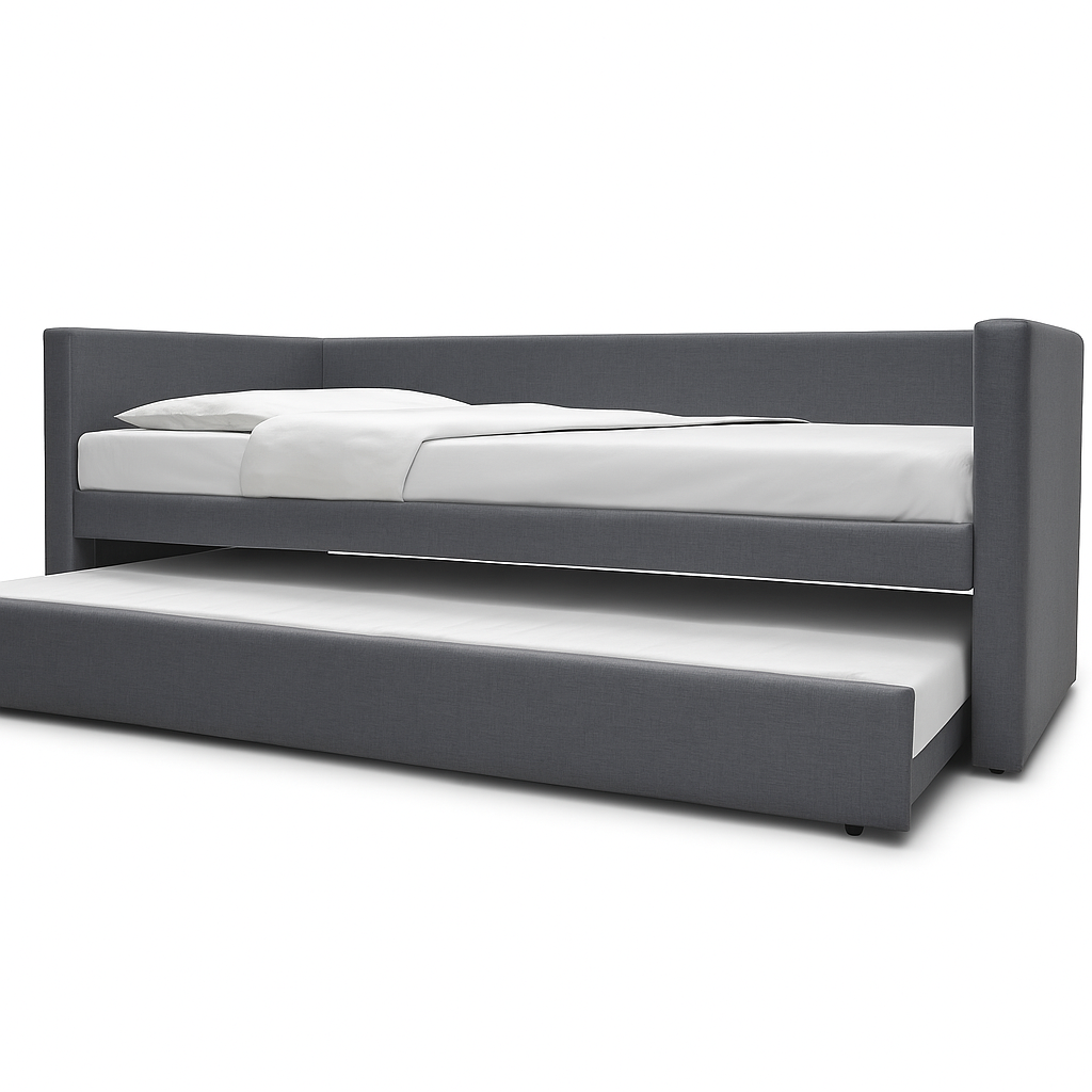 Underneath, a pull-out trundle slides out effortlessly to provide a second sleeping space—ideal for overnight guests, kids, or space-saving urban living.