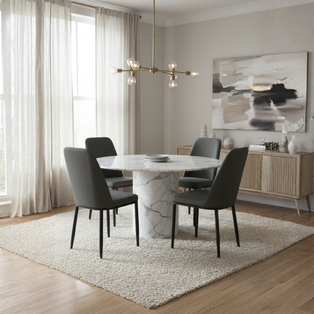 Style meets durability with the Merope Fabric Dining Chair. Specifically engineered for pet owners, this chair is upholstered in a specialized pet-friendly fabric that resists scratches, snags, and stains, ensuring your dining area stays pristine. The minimalist design features a comfortable, contoured backrest and a supportive seat, all resting on sturdy black tapered legs. It is the perfect blend of modern aesthetics and practical functionality for the busy household.