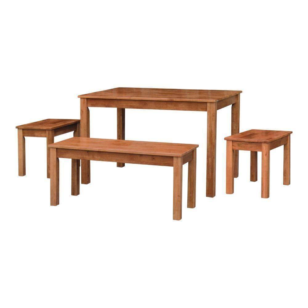 The Alfonso Dining Set is made from solid rubberwood of sturdy quality. Its short bench is perfect for tucking under the table when not in use. This dining set is durable, stylish, and perfect for making the most of your dining space.