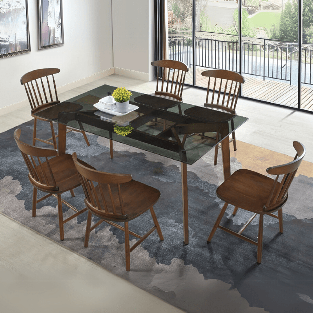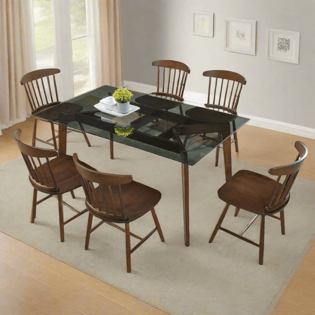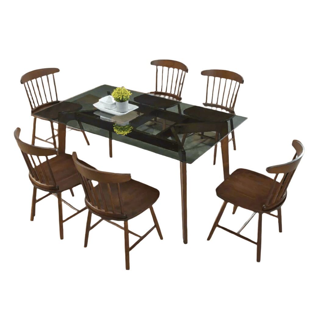 Amorette Wooden Dining Set with Tempered Glass Top (1+6)