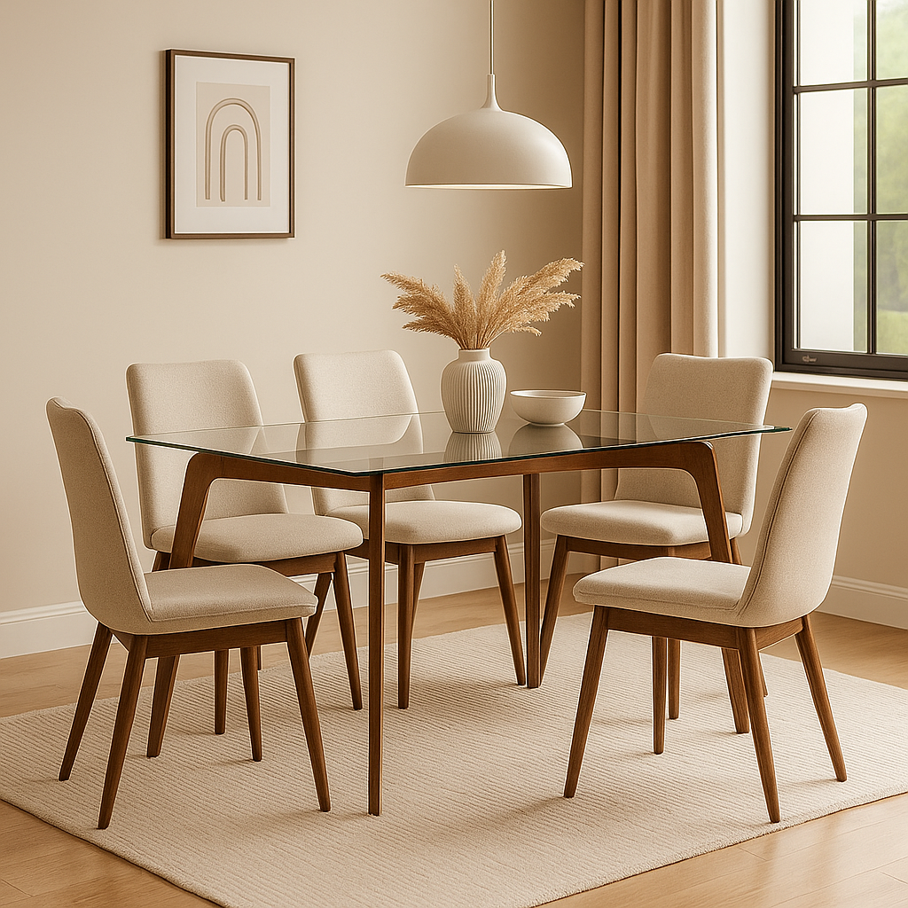 The Amorette Dining Table is where sleek design meets everyday practicality. With a striking 10mm grey-tinted tempered glass top and a robust solid wood leg frame, this table brings a contemporary edge to any dining room without sacrificing warmth or durability.