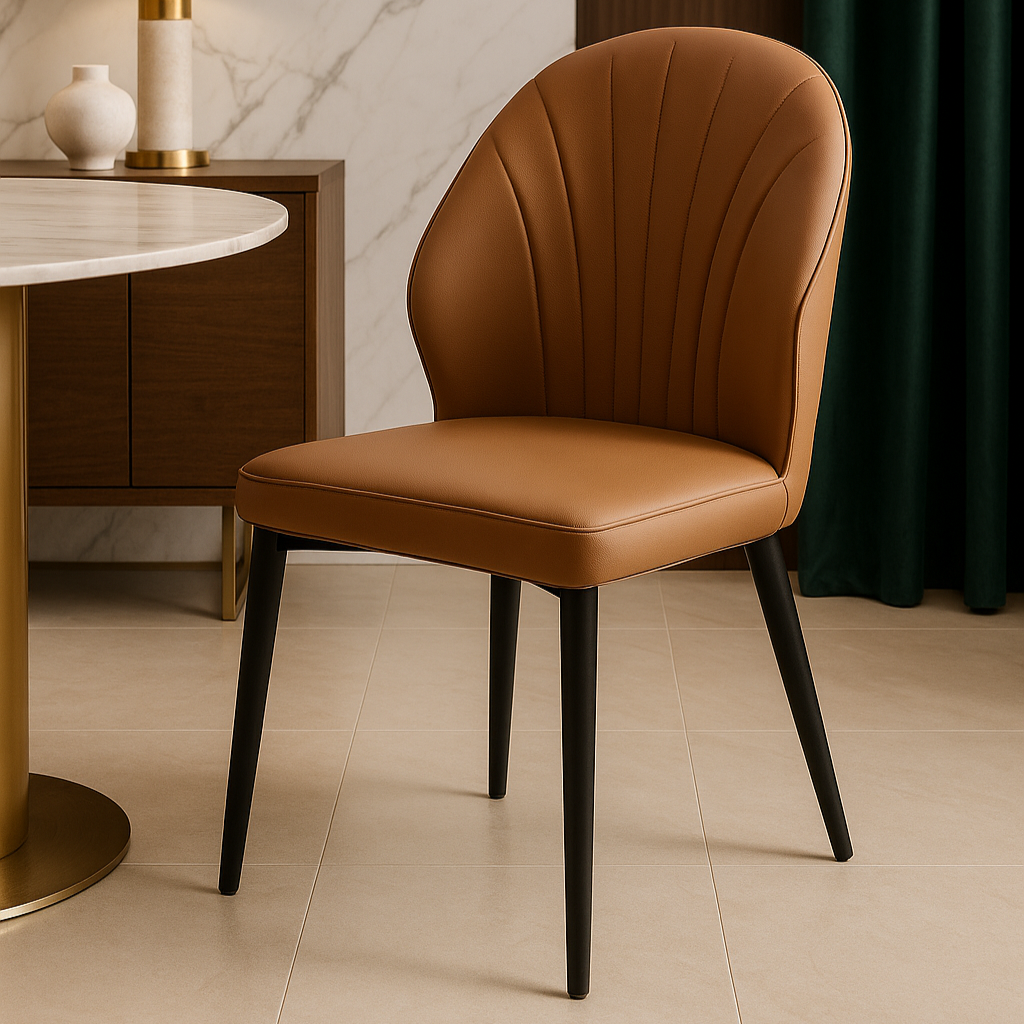 Bring timeless elegance to your dining space with the Bayne Faux Leather Dining Chair, designed for both comfort and modern sophistication. Its beautifully curved backrest and subtle vertical stitching create a refined silhouette that enhances any dining setup, while the smooth faux leather upholstery offers a luxurious yet easy-to-maintain finish.