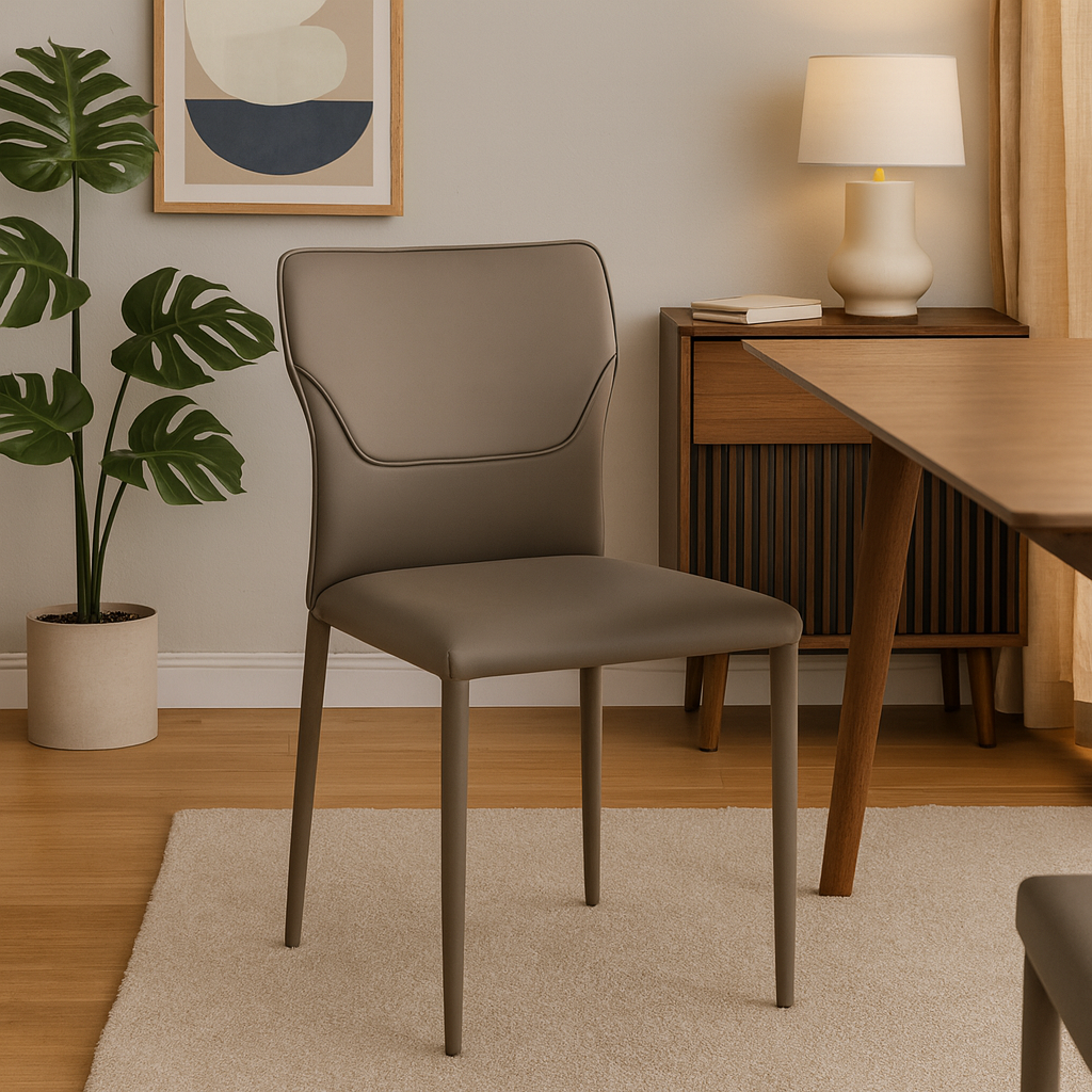 The Kayle Faux Leather Dining Chair is where understated elegance meets modern comfort. Designed with smooth, high-quality faux leather upholstery and a gently contoured backrest, it offers both style and support for everyday dining or entertaining.