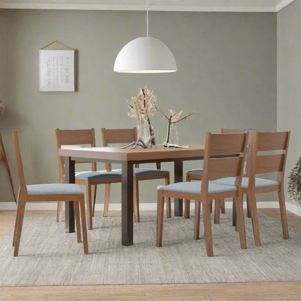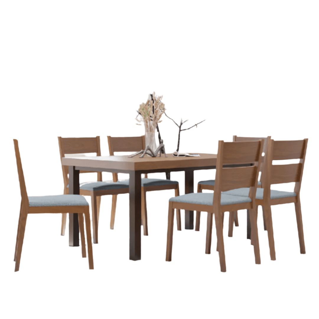 The Xerxes Wooden Dining Set brings a touch of Nordic elegance to your dining space. Designed with a minimalist yet warm aesthetic, this set includes a dining table and six matching chairs — perfect for family dinners or entertaining guests in style.