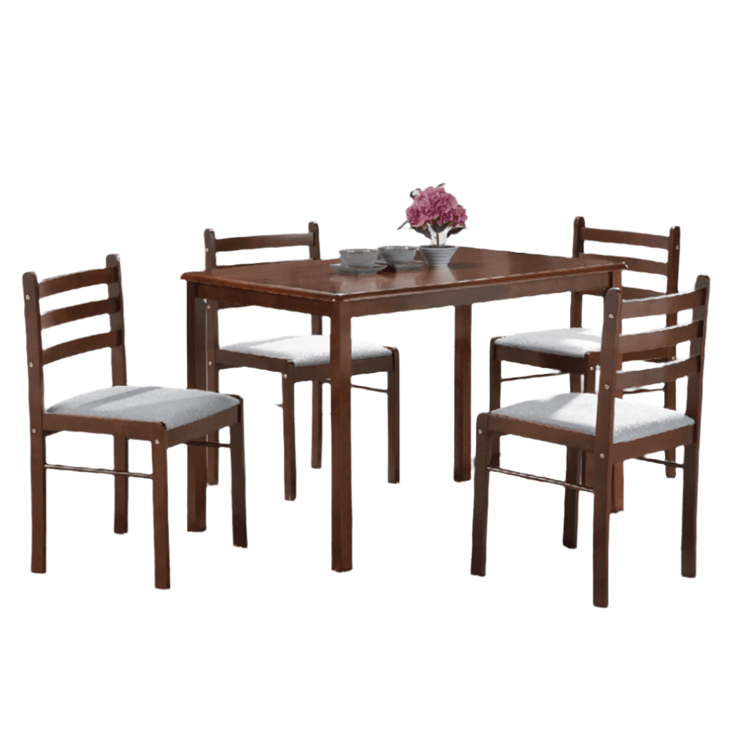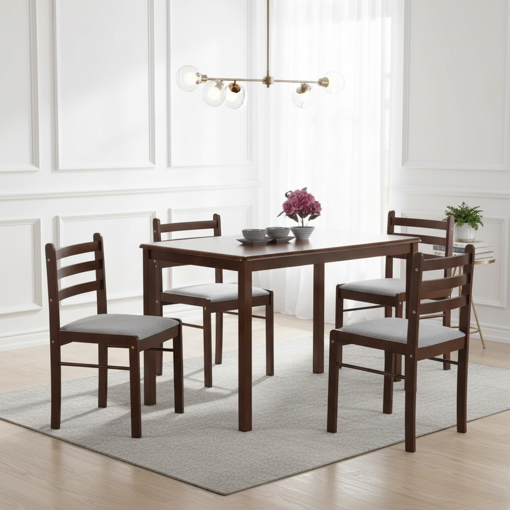 The Selka Wooden Dining Set is an excellent choice for those seeking a compact and functional dining setup with a warm, homely touch. Featuring a sturdy solid wood frame, an MDF tabletop finished in a wood veneer, and comfortable chairs with soft grey fabric seat cushions, this 4-seater set is ideal for apartments, small dining nooks, or studio spaces.