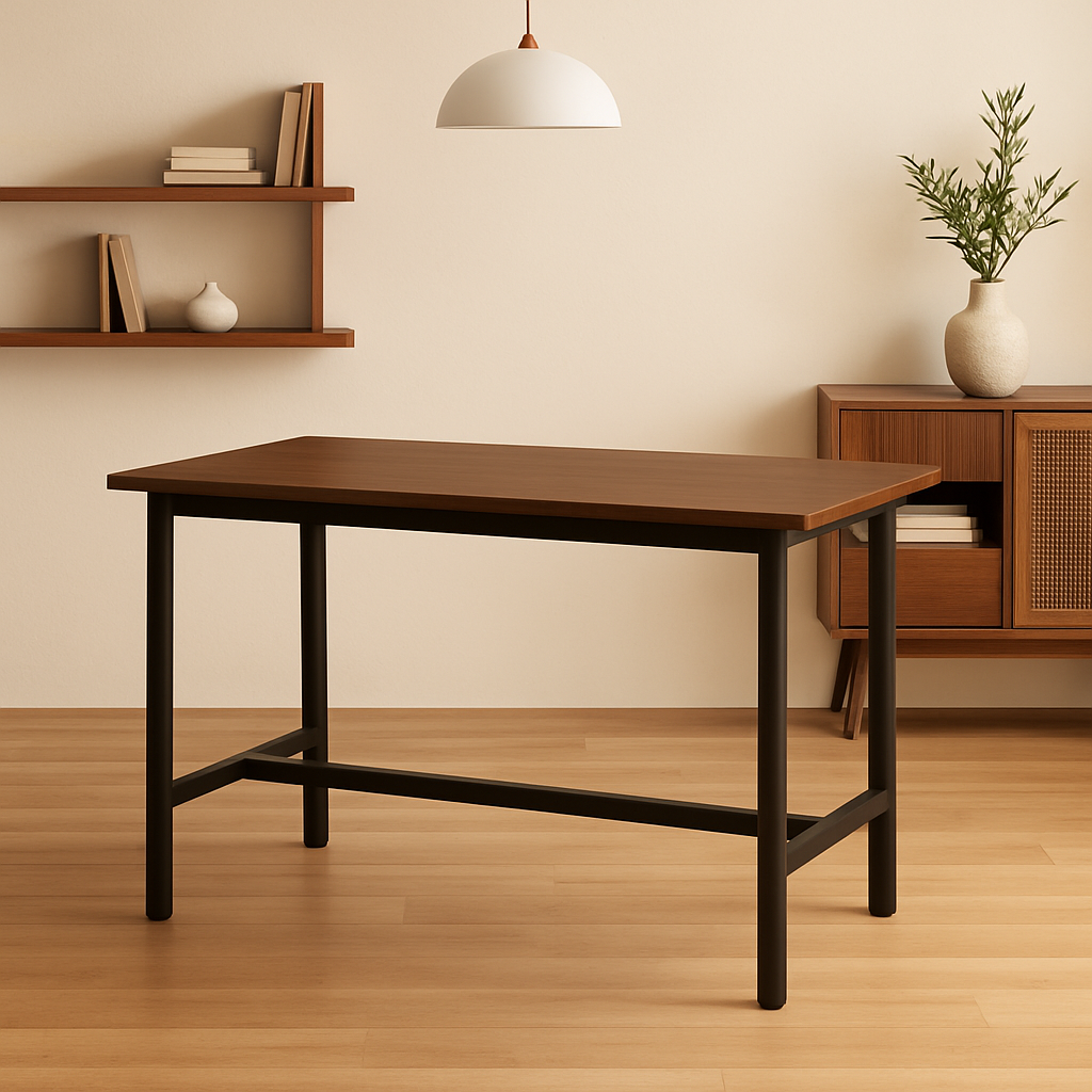 Introducing the Clukas Wooden Dining Table – a thoughtfully designed piece that brings a touch of urban industrial style to your home. Its warm wood-finished tabletop offers natural character and charm, while the sleek black metal frame delivers durability and a modern contrast. Built for form and function, this table is the perfect fit for young couples, small families, or anyone who values efficient use of space in city living.