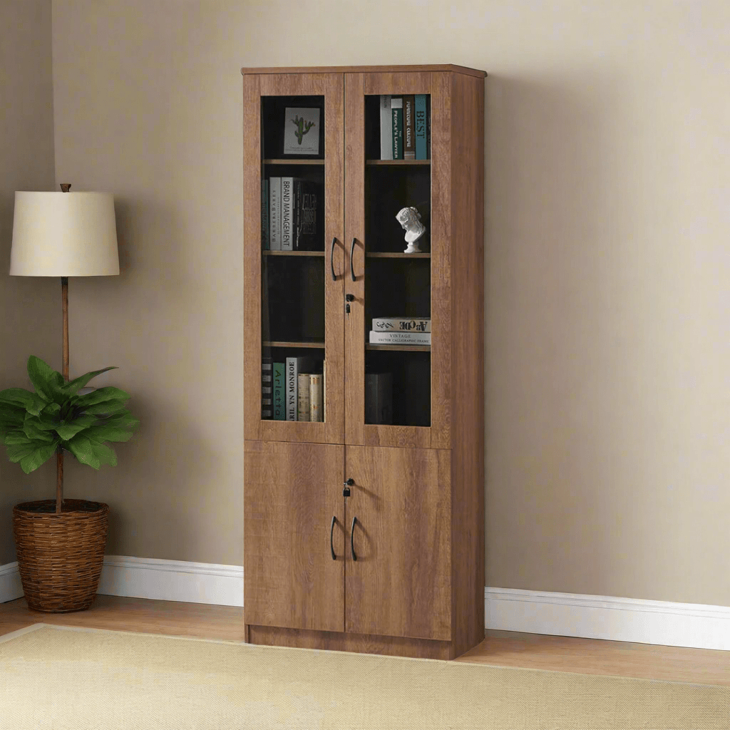 Enhance your home with the Tindra VII Wooden Bookshelf / Display Cabinet, designed for both style and practicality. Featuring 2 glass doors and 4 spacious shelves, this cabinet is ideal for showcasing books, decorative pieces, and personal collections while keeping them protected from dust. Its sleek and modern design effortlessly complements contemporary interiors.
