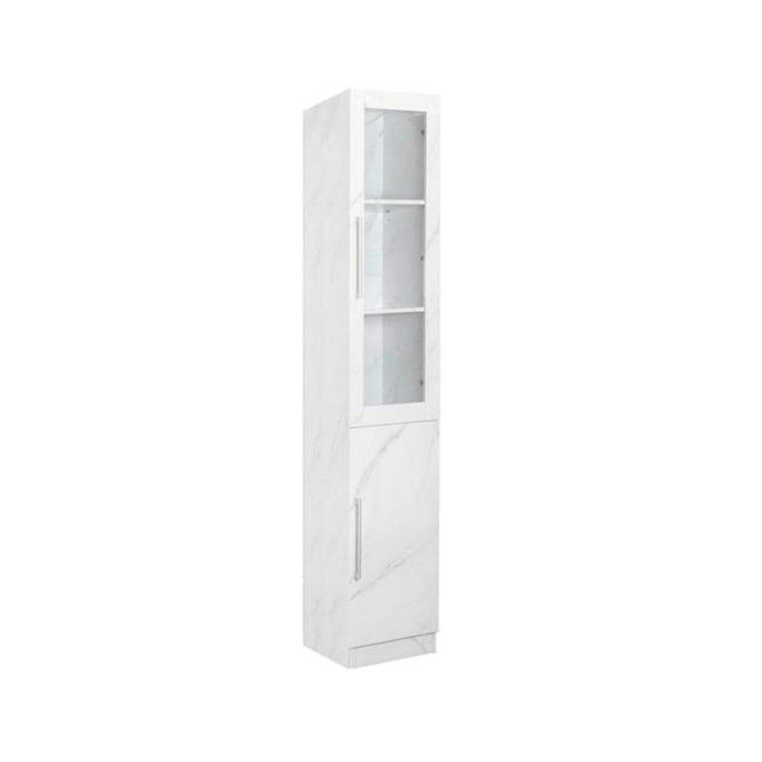 The Elizabeth 1 Door Display Unit / Bookshelf is sleek with a snazzy white marble high gloss board that screams elegance. The melamine laminate means cleaning's a breeze - a total win for our busy lives. The door? Soft-closing hinges, so no more annoying bangs. And because it's mould-resistant, it's perfect for our humid climate. The glass panel door of the Elizabeth 1 Door Display Unit lets you show off your stuff while keeping it dust-free.