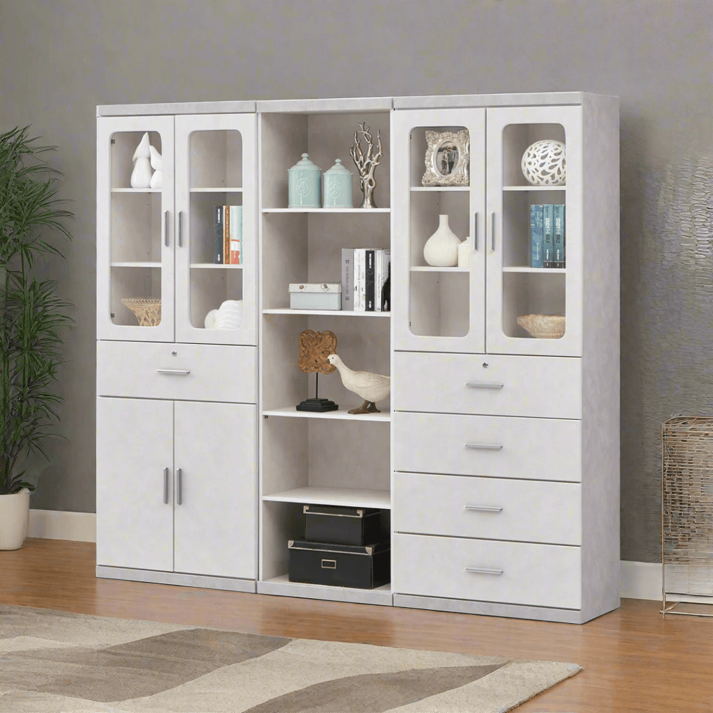 - 4 Glass Doors: Showcases books and decorative pieces while keeping dust away.