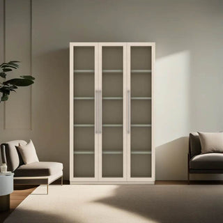 When selecting a bookshelf Singapore or living room display cabinet, assess the available space in your room. Measure the dimensions of the area where you intend to place the cabinet shelves, ensuring they fit comfortably without overwhelming the space. Additionally, consider the bookshelf's height, width, and depth with doors to ensure it accommodates your books and decorative items while complementing your living room decor.