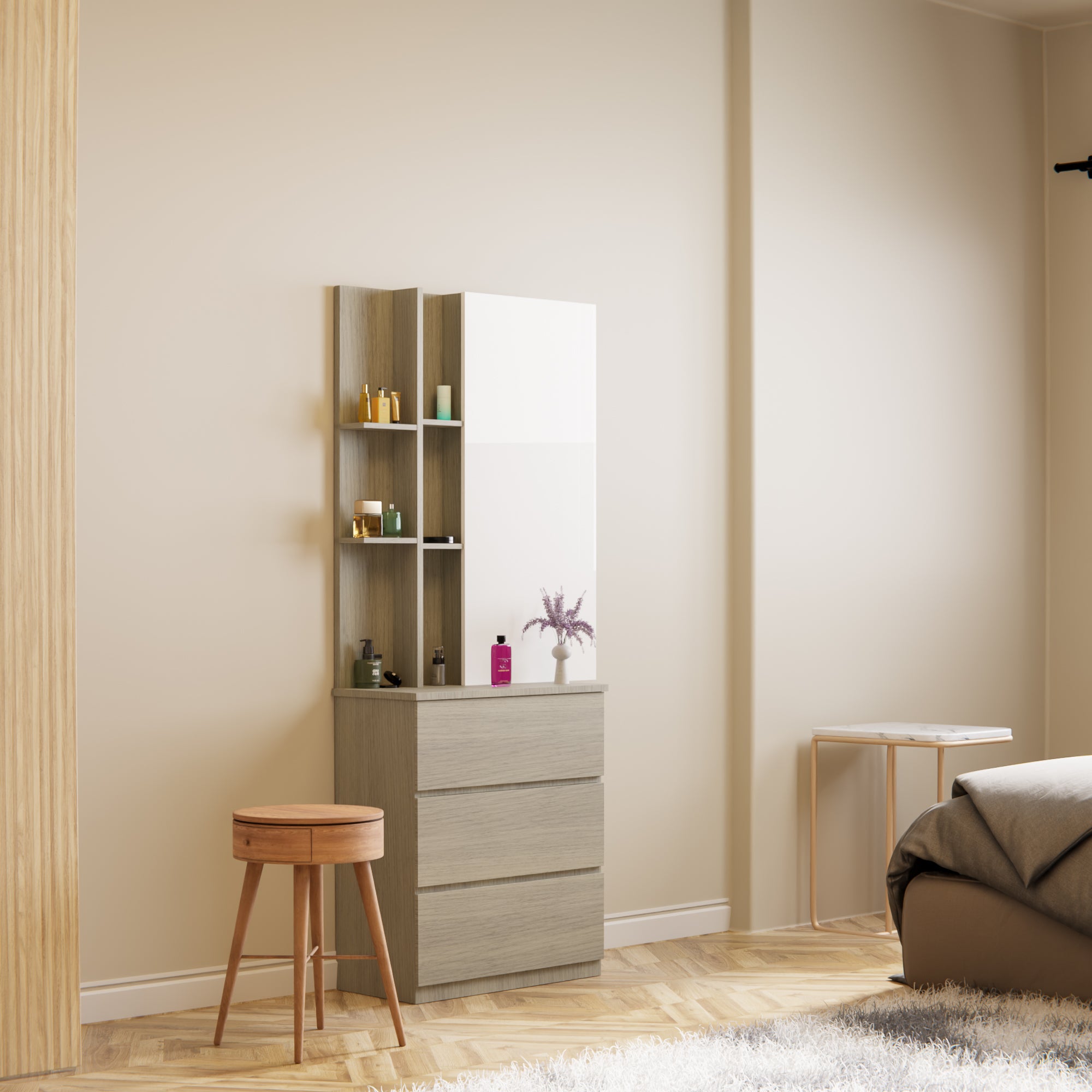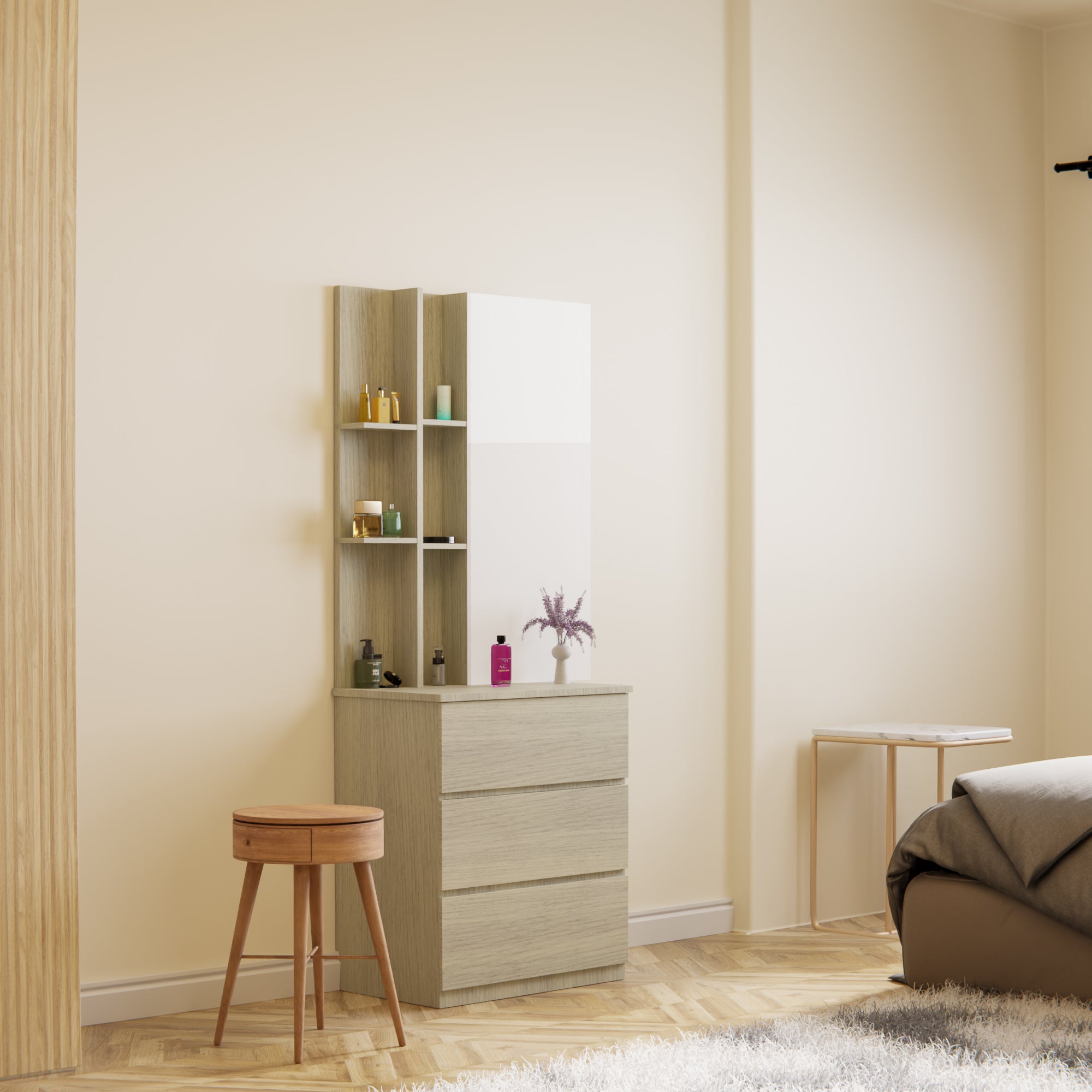 The Jollie Dressing Table brings elegance and functionality to your bedroom or vanity space. Featuring a sleek, modern design with ample surface area, this piece provides the perfect spot to organize your beauty essentials and get ready in style. The sturdy construction ensures lasting durability, while its sophisticated aesthetic complements any décor. Whether you're applying makeup, styling your hair, or simply enjoying a moment of self-care, the Jollie Dressing Table transforms your daily routine into a luxurious experience. An essential addition for anyone seeking both practicality and refined beauty in their personal space.