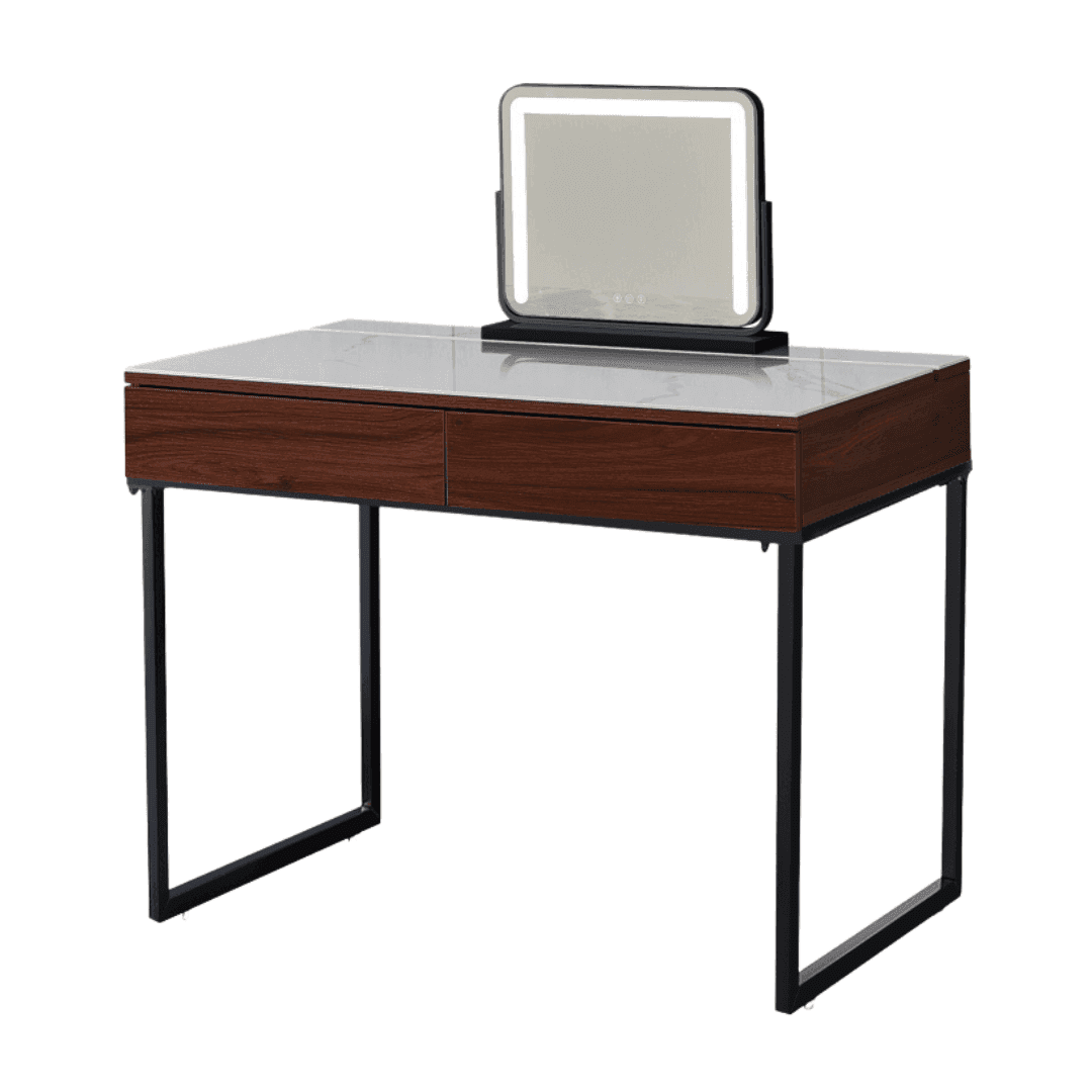 Experience elegance and functionality with the Muriel Glossy Sintered Stone Dressing Table. This 120cm masterpiece elevates your home interior with its sleek design and glossy sintered stone top. Perfect your beauty routine with the LED mirror, offering versatile lighting options in white, cool, and warm tones. Stay organised with two spacious drawers, providing ample storage for your essentials.