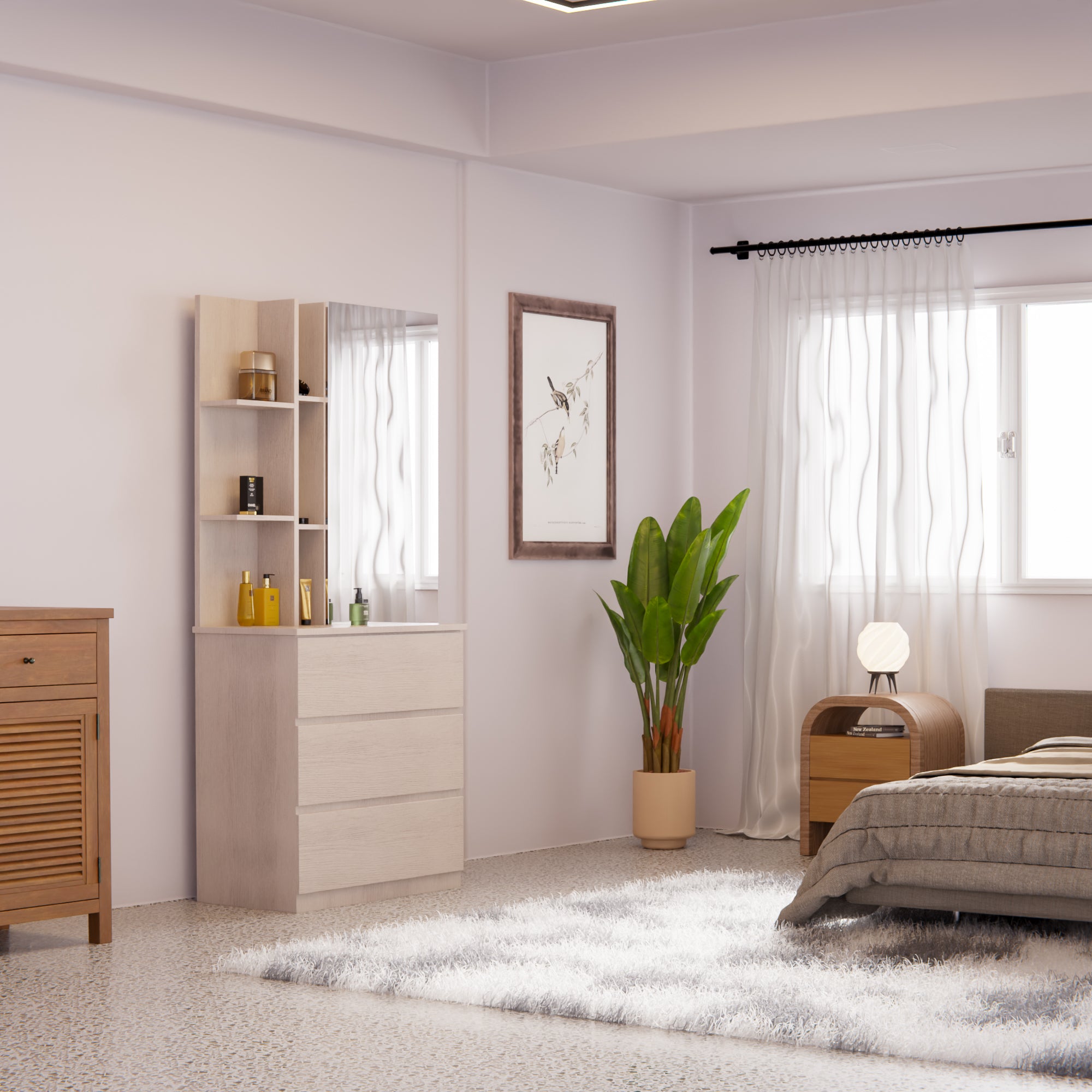 The Yonda Dressing Table brings elegance and functionality to your bedroom or vanity space. Featuring a sleek design with ample surface area, this piece offers the perfect spot to organize your beauty essentials and get ready in style. The sturdy construction ensures lasting durability, while its contemporary aesthetic complements any modern décor. Whether you're applying makeup, styling your hair, or simply enjoying a moment of self-care, the Yonda provides a dedicated, sophisticated space that transforms your daily routine into something special. An investment in both beauty and home design.