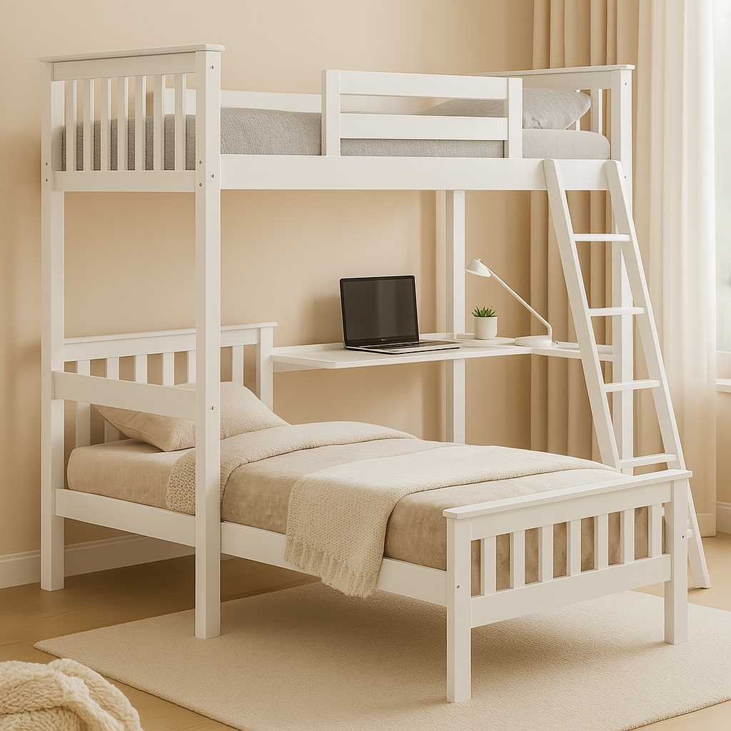 Lumen White Wooden Bunk Bed (Convertible Loft Option)