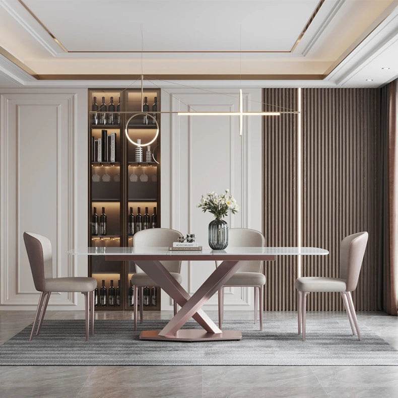 Have you ever been caught off guard by unexpected guests? The Izar Sintered Stone Extendable Dining Table has your back. With its extendable feature, this table smoothly transitions from an intimate setting to a larger one, accommodating up to 140cm when extended. The sintered stone top is incredibly durable and easy to maintain, perfect for handling the spills and thrills of daily life. The moran purple metal legs add a touch of modern elegance, seamlessly fitting into any home decor.