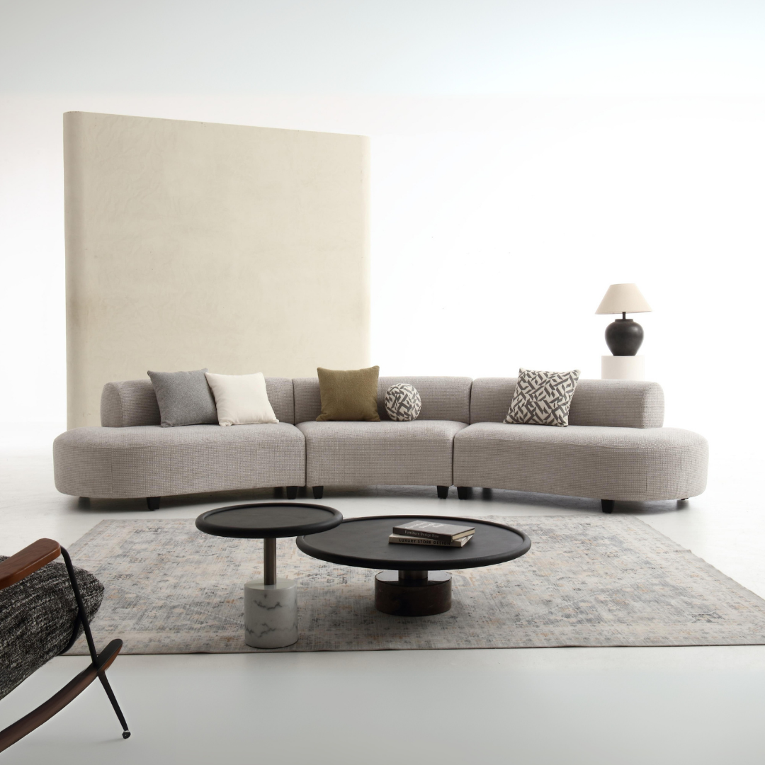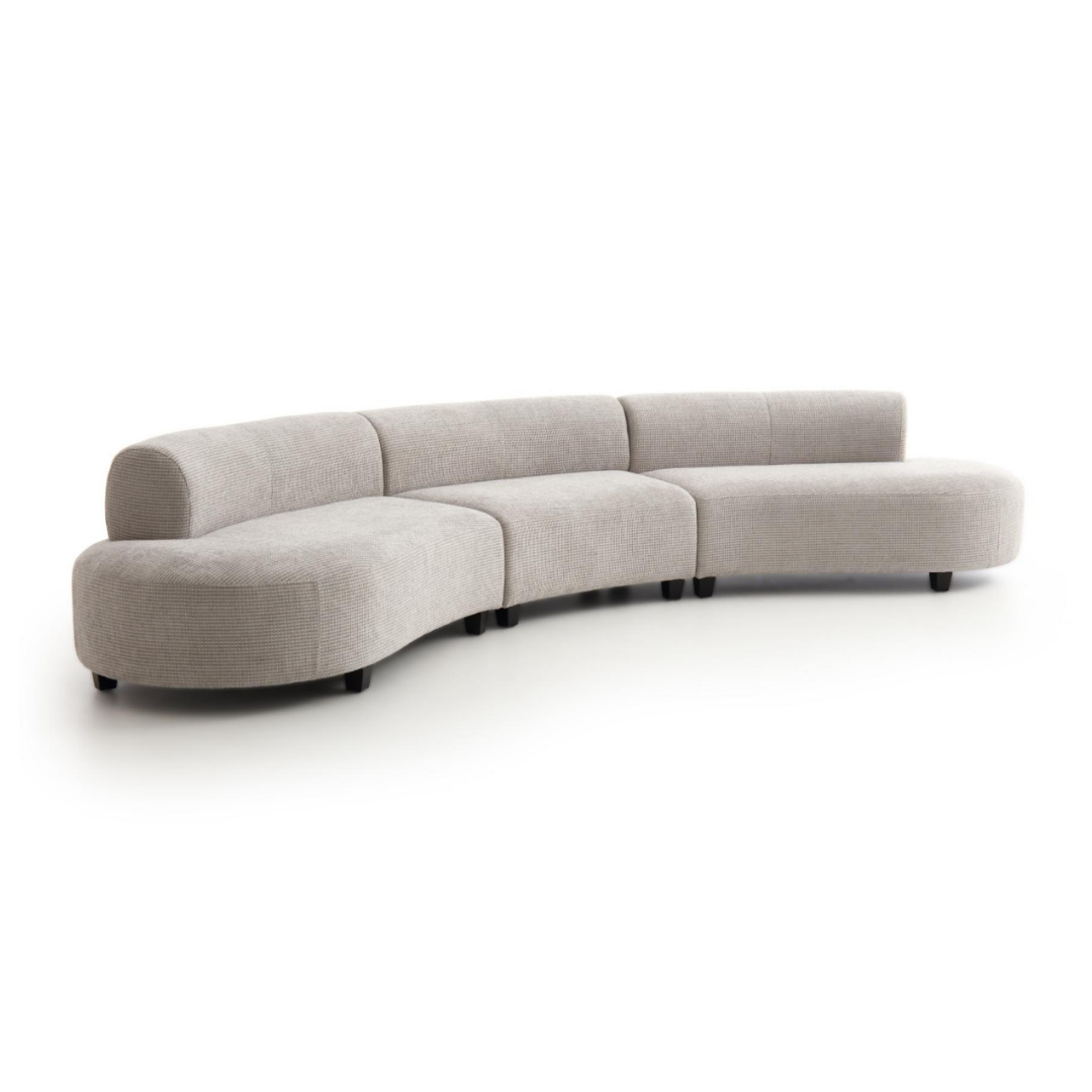 The Coriele Sectional Fabric Sofa combines fluid curves with a tailored, contemporary aesthetic, creating a striking centrepiece for modern living spaces. Upholstered in a finely textured fabric, its gentle arc design invites conversation and enhances room flow. The generous seating, plush cushions, and low-profile silhouette make it both visually appealing and exceptionally comfortable.