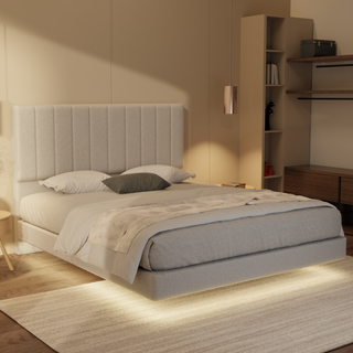 Kassie Teddy Fabric Floating Bed Frame (With LED)