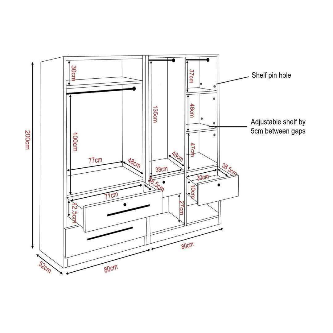 Featuring four open doors and integrated drawers, the Deverac 4 Open Door Wardrobe with Drawers offers ample storage space for your clothes and accessories while keeping everything organised and easily accessible. With straightforward design, this wardrobe combines modern aesthetics with practicality, making it a must-have for any home.